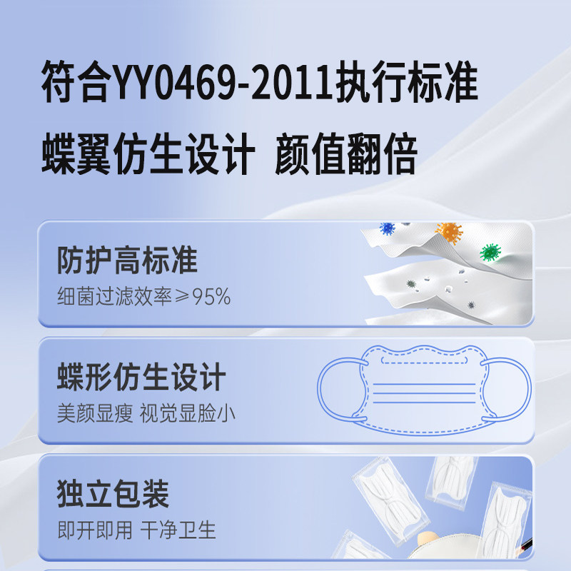 云朵M型口罩马卡龙医用外科护眼角成人独立蝶形立体显脸小防护