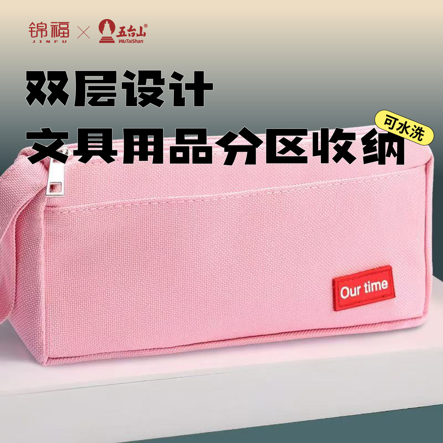 锦福五台山小方包笔袋简约小清新铅笔盒文具盒文具袋高中生初中生笔袋男孩子小学生用多功能大容量铅笔盒儿童