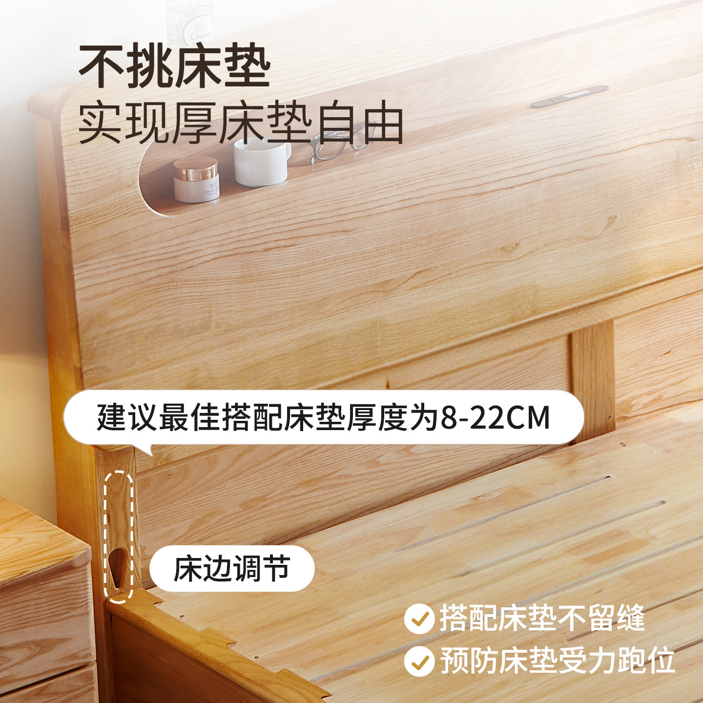 优尚雅轩白蜡木实木床双人床工厂直销主卧1.8米储物床北欧原木床
