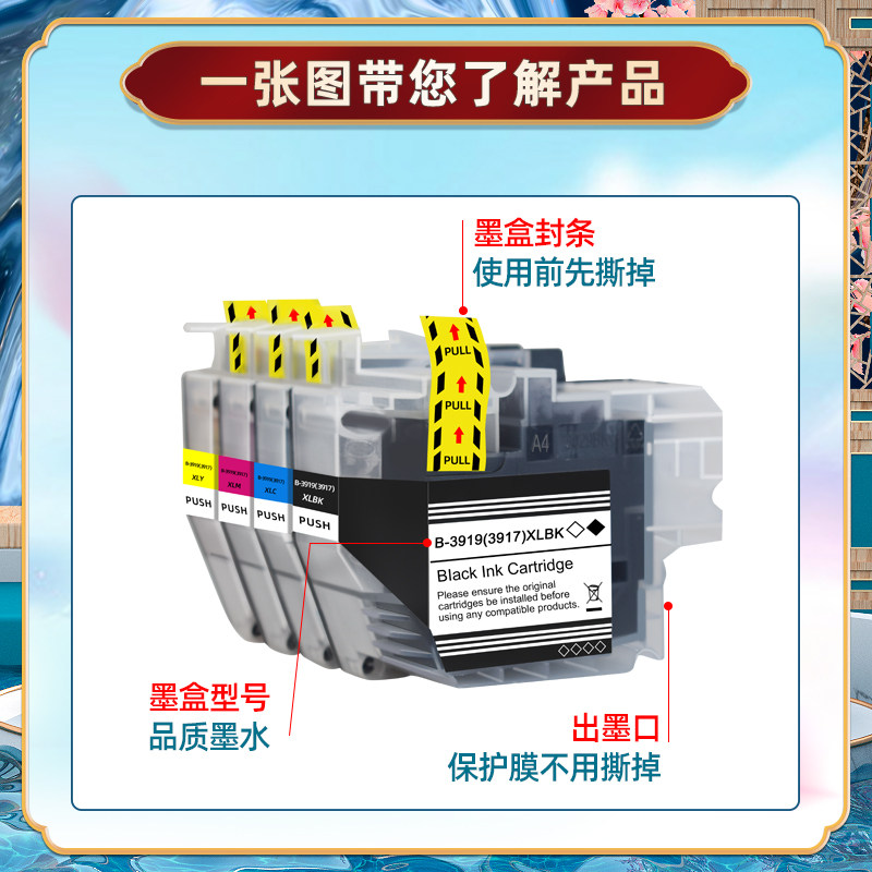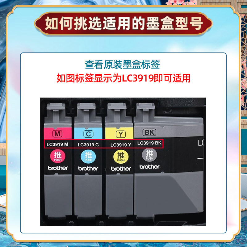 LC3919BK四色LC3919C墨盒LC3919M彩墨LC3919Y适用Brother兄弟牌MFC-J2330DW彩色喷墨打印机MFC-J2730DW墨水盒