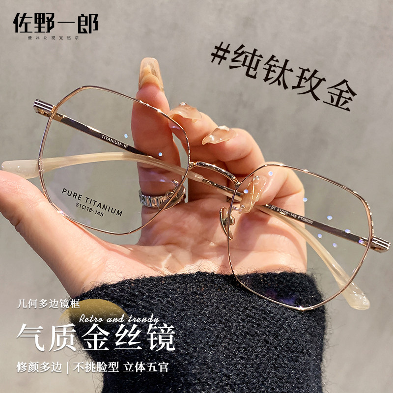超轻纯钛眼镜近视女款专业可配度数大脸显瘦素颜防蓝光眼睛框架男