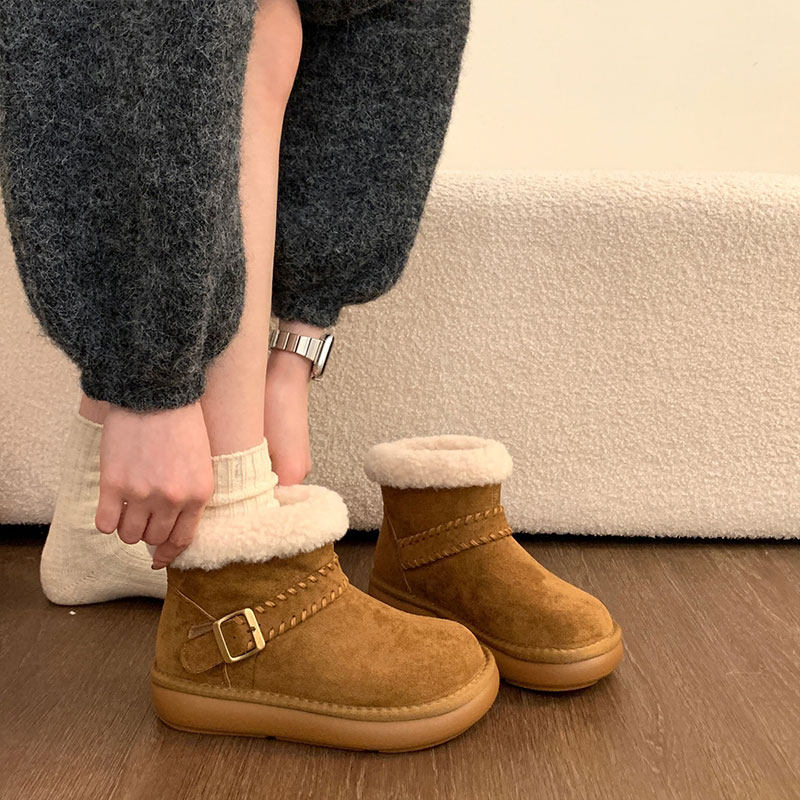 Chio2nd南风 雪地靴棉鞋2024新款冬季女士厚底加绒皮毛一体鞋子