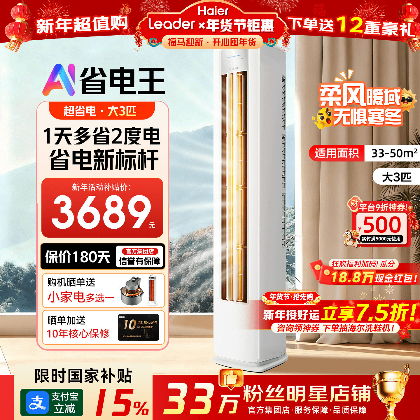 海尔空调3匹2匹一级能效变频家用省电统帅立式客厅冷暖柜机旗舰店