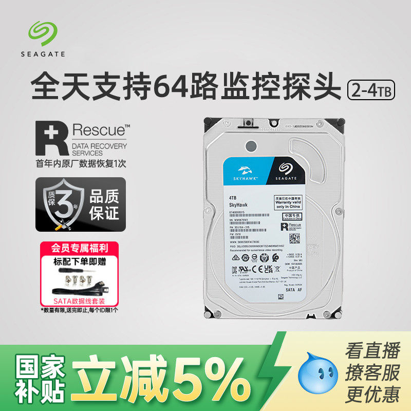 Seagate希捷酷鹰机械硬盘2tb/8tb录像机监控专用盘官方旗舰店4TB