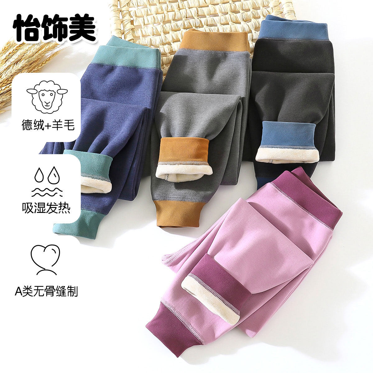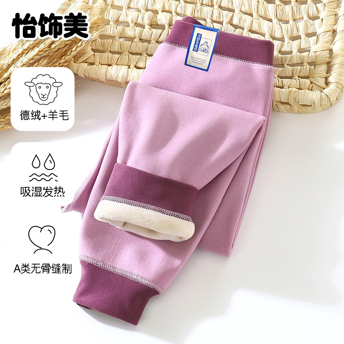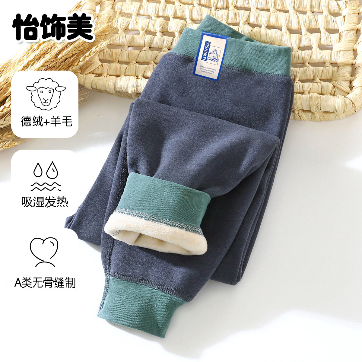 蚕丝羊毛男童保暖裤加绒加厚儿童秋冬神器校服德绒女童中大童秋裤