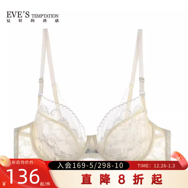 夏娃的诱惑内衣女大胸显小缩胸夏季薄款防下垂蕾丝超薄文胸大码