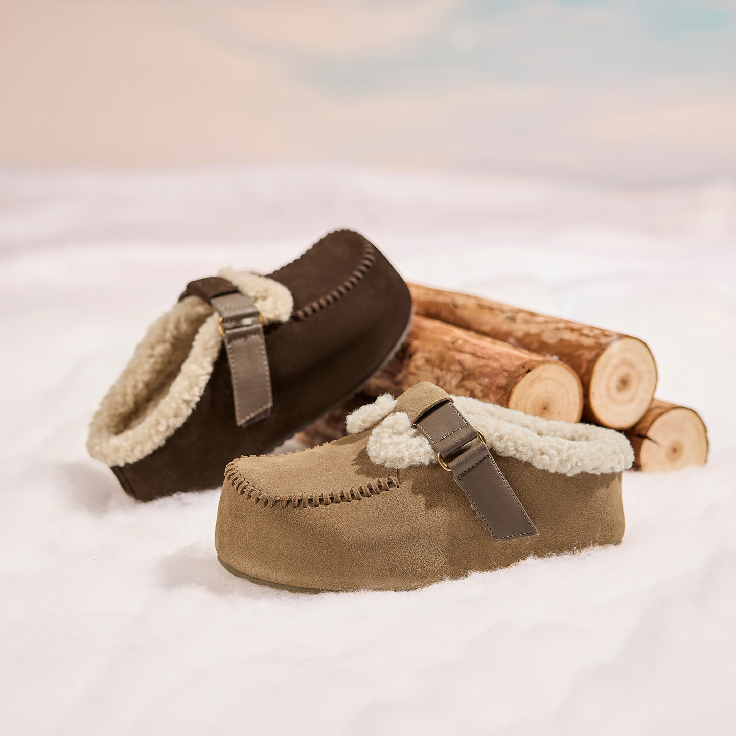 TATAFOCUS~加绒毛毛鞋韩版圆头皮带扣2025冬季新款勃肯鞋女35-28