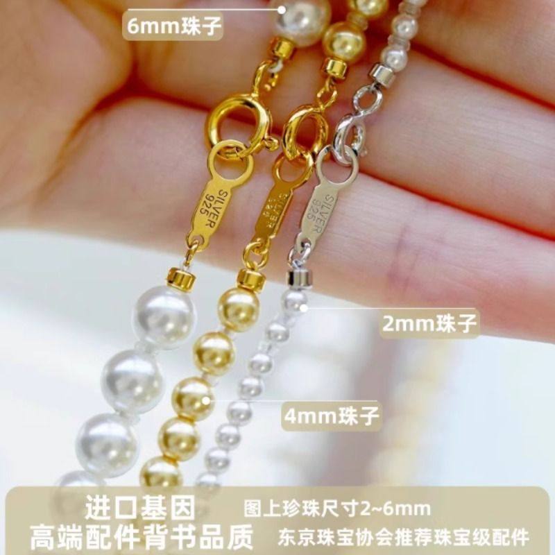 怡悦 进口小珠专用扣头珍珠水晶手链项链银镀铑金diy配件材料扣子