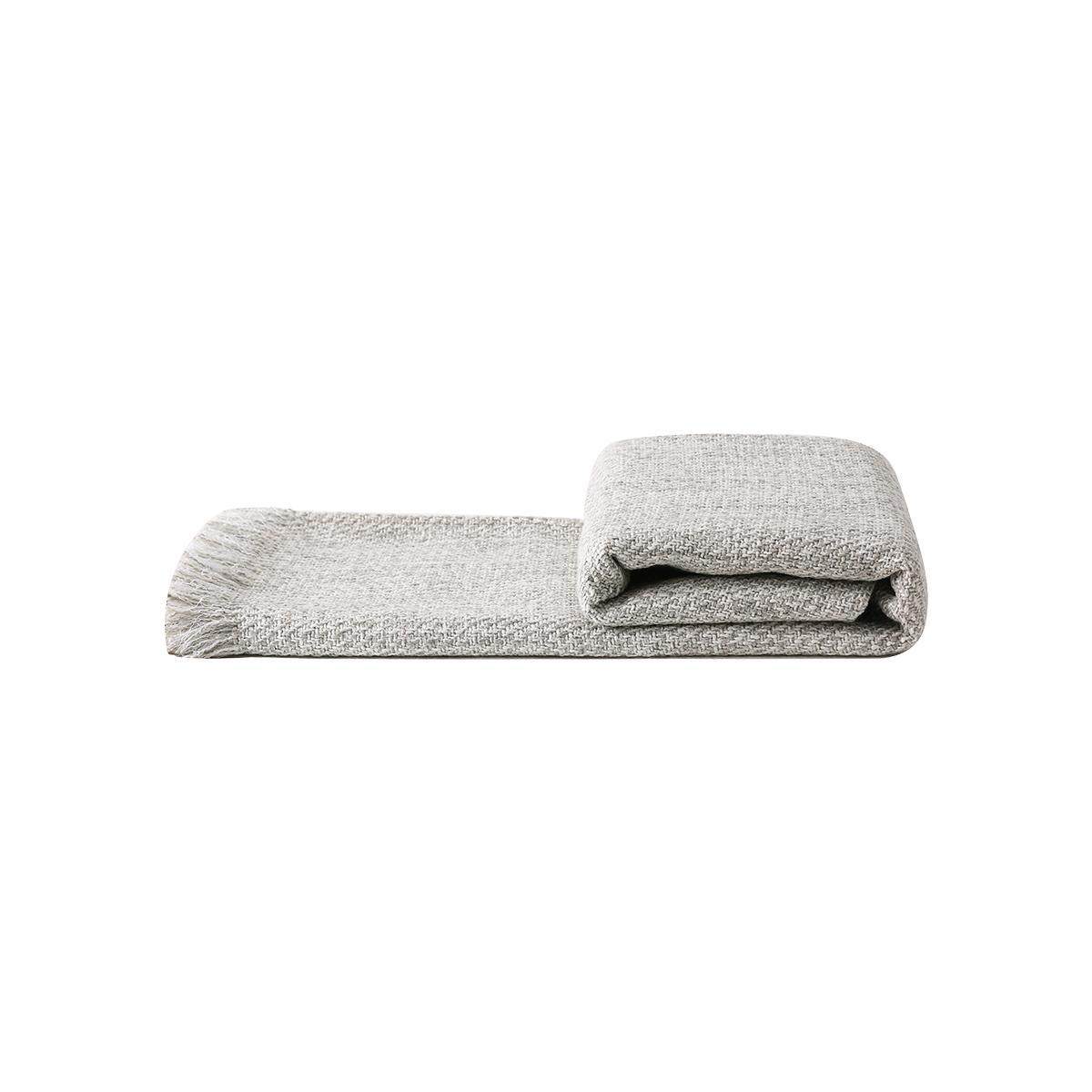现代简约时尚米色颗粒流苏搭毯酒店民宿样板间床尾巾售楼软装居家