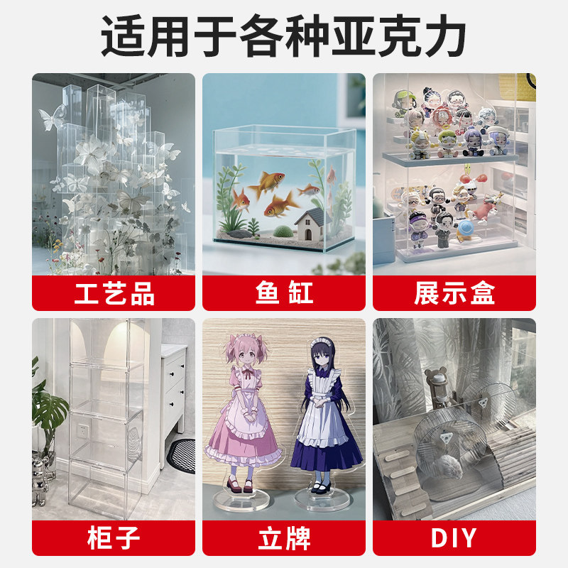 亚克力胶水粘亚克力透明板鱼缸PMMA有机玻璃PLA PC板塑料裂痕修复专用无痕修补胶无影胶强力型粘合剂速干胶水