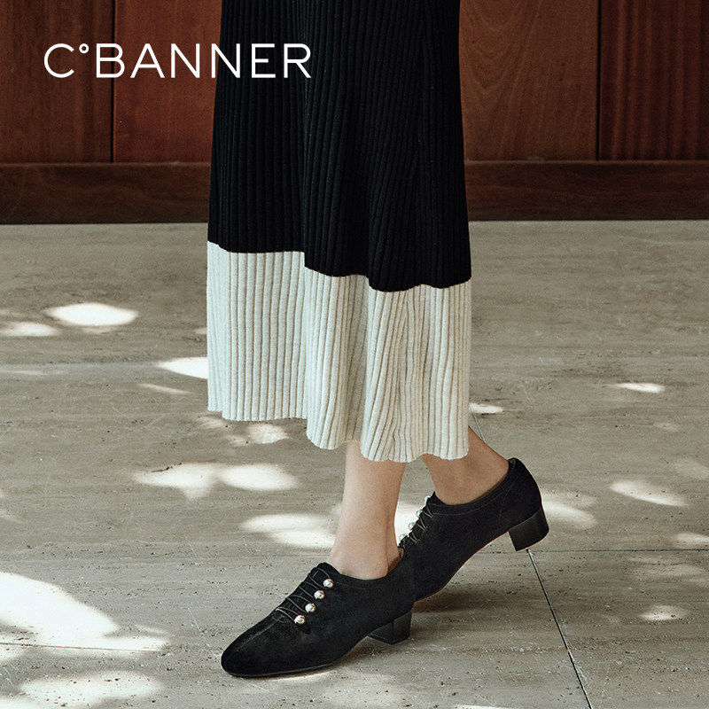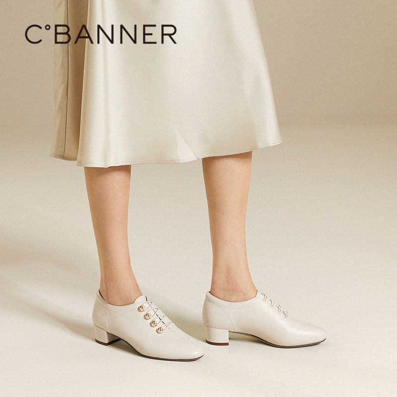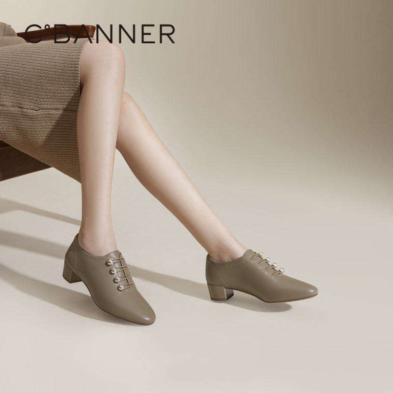 【静音系列】千百度粗中跟深口时装单鞋女秋季新款羊皮踝靴