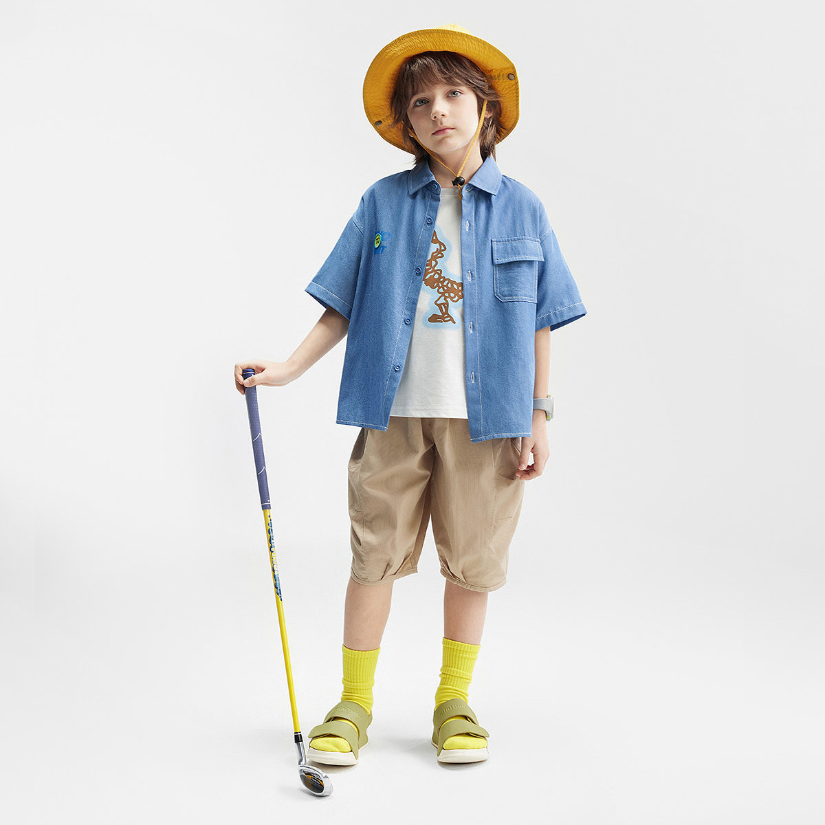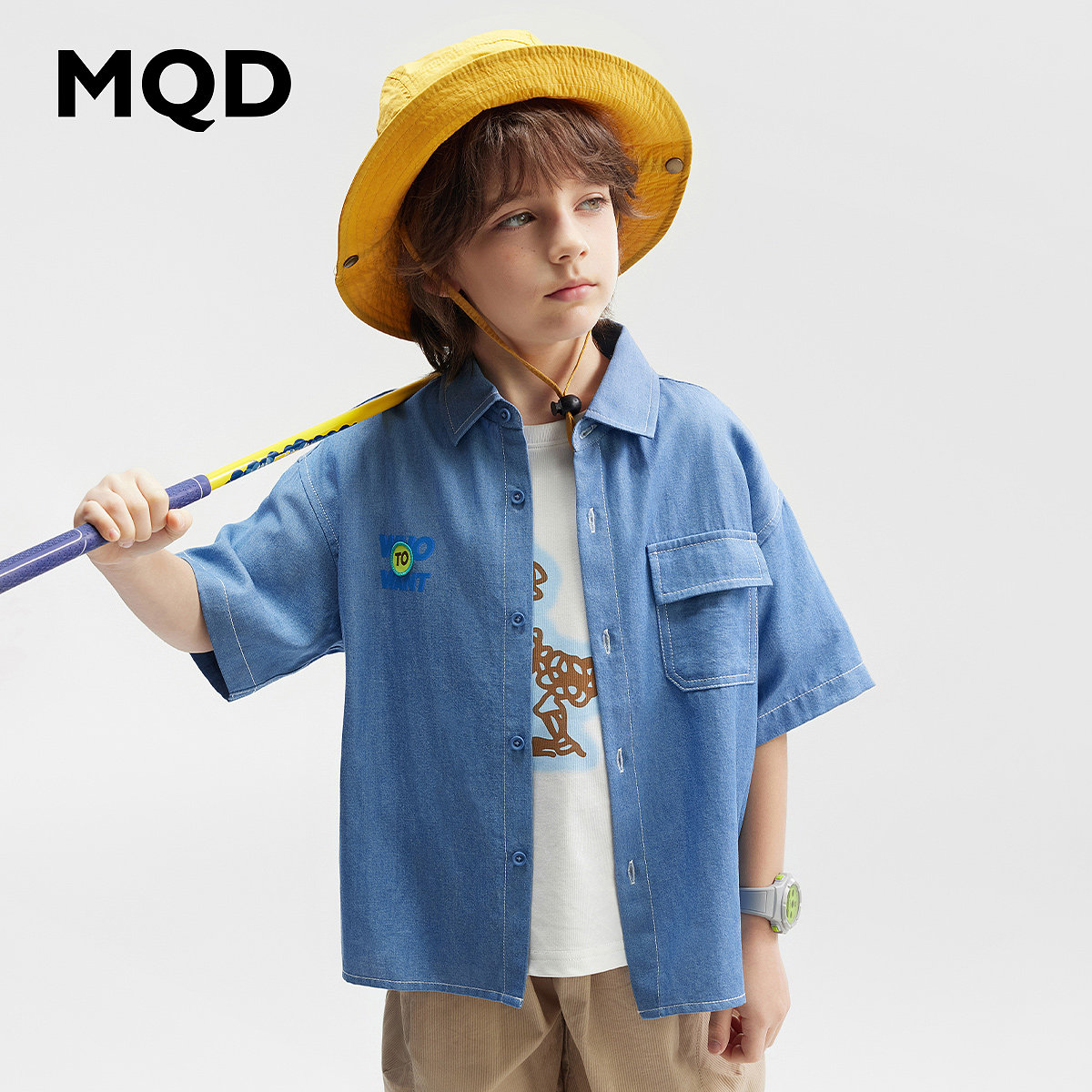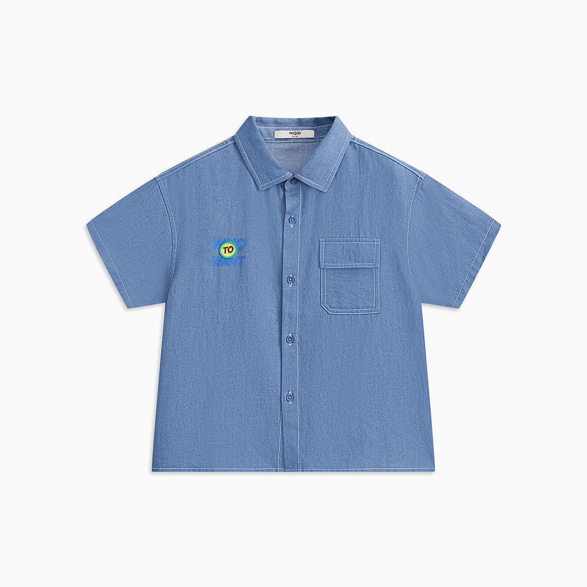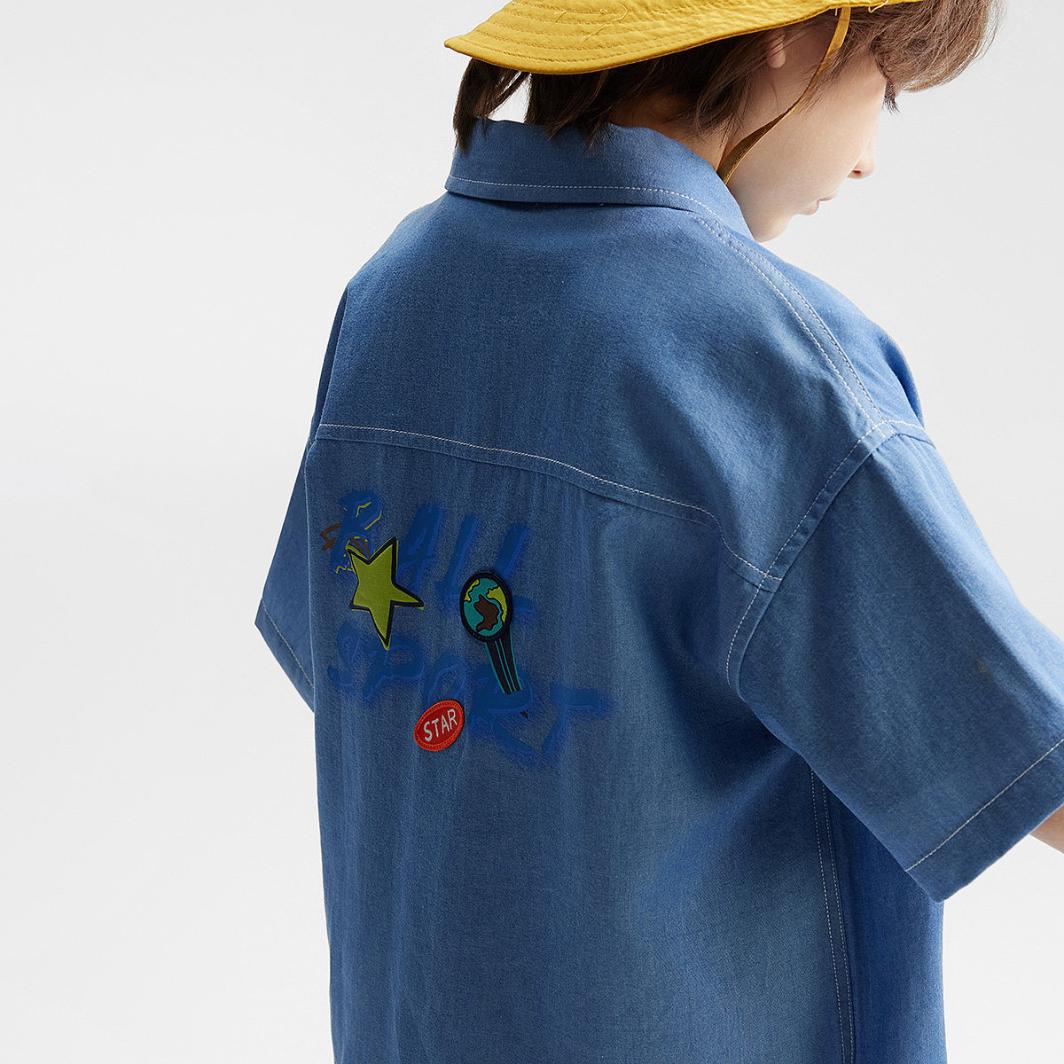 MQD童装男童夏新款牛仔衬衫艺术手绘儿童百搭宝宝短袖衬衣