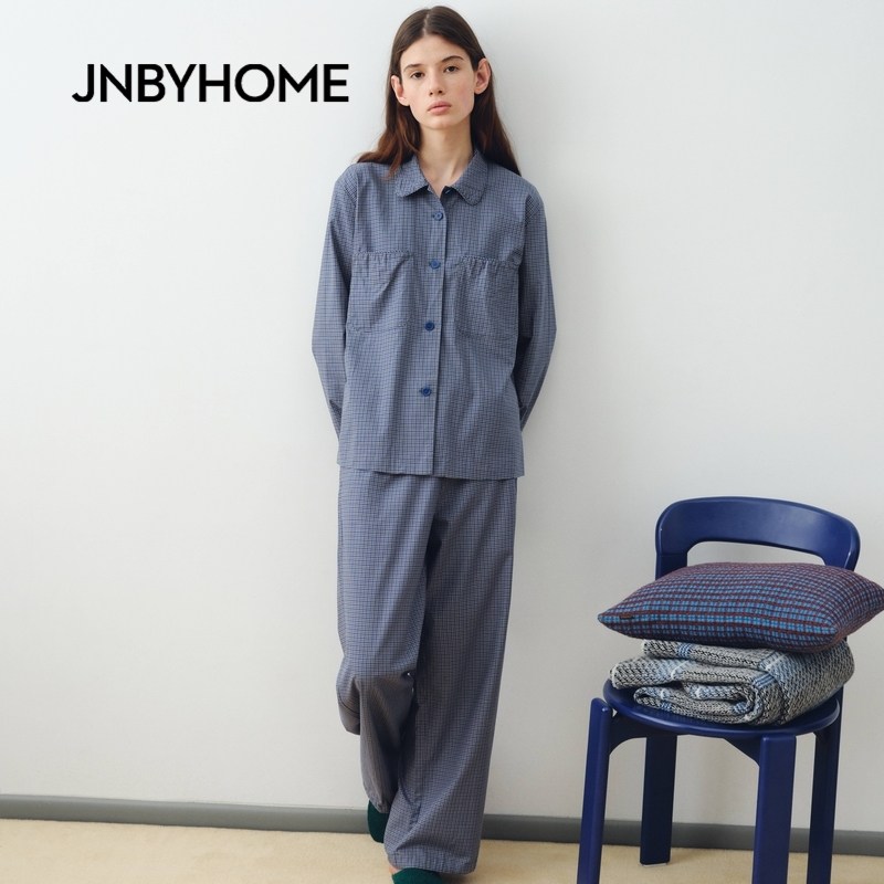 JNBYHOME江南布衣25年秋季新女长袖家居服套装休闲格纹睡衣情侣