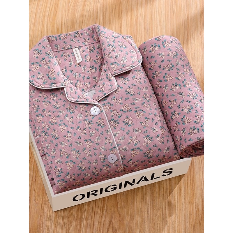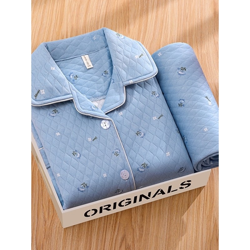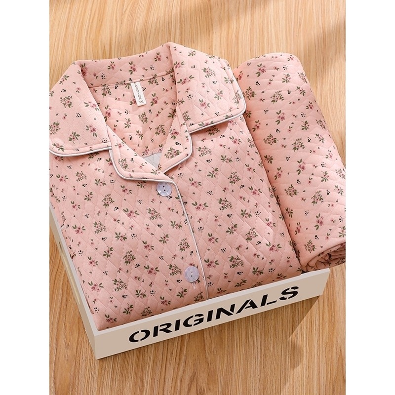 红豆睡衣女士中年妈妈秋冬季加厚空气棉薄夹棉夹层大码冬天家居服