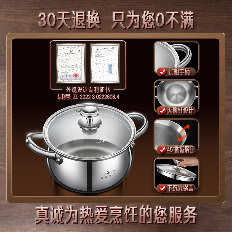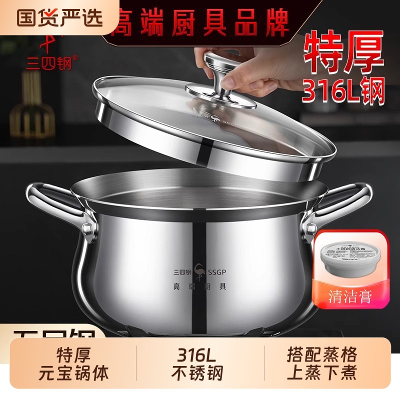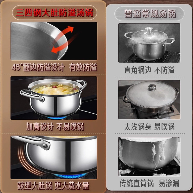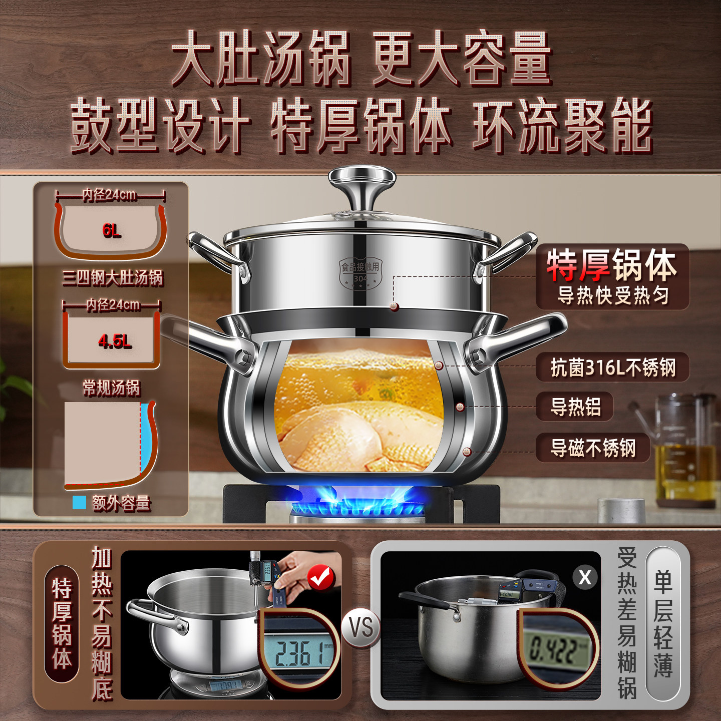 三四钢汤锅加厚316L不锈钢家用新款大肚锅煲汤电磁炉炖锅