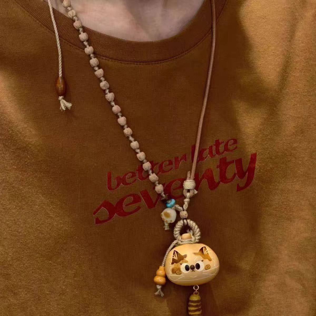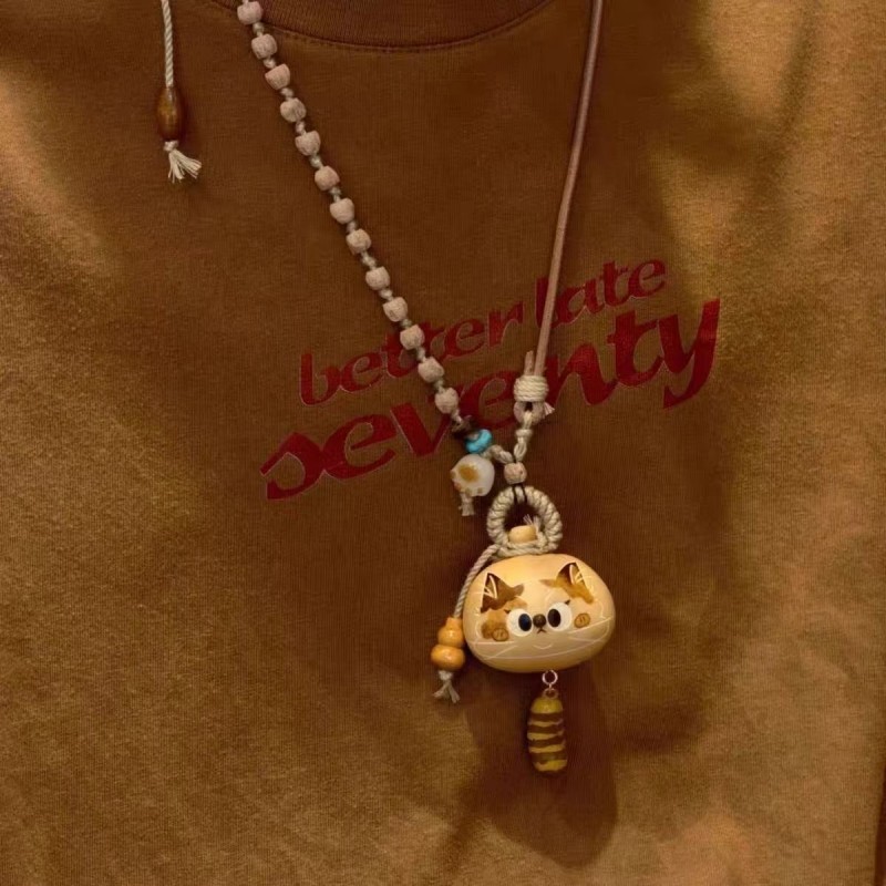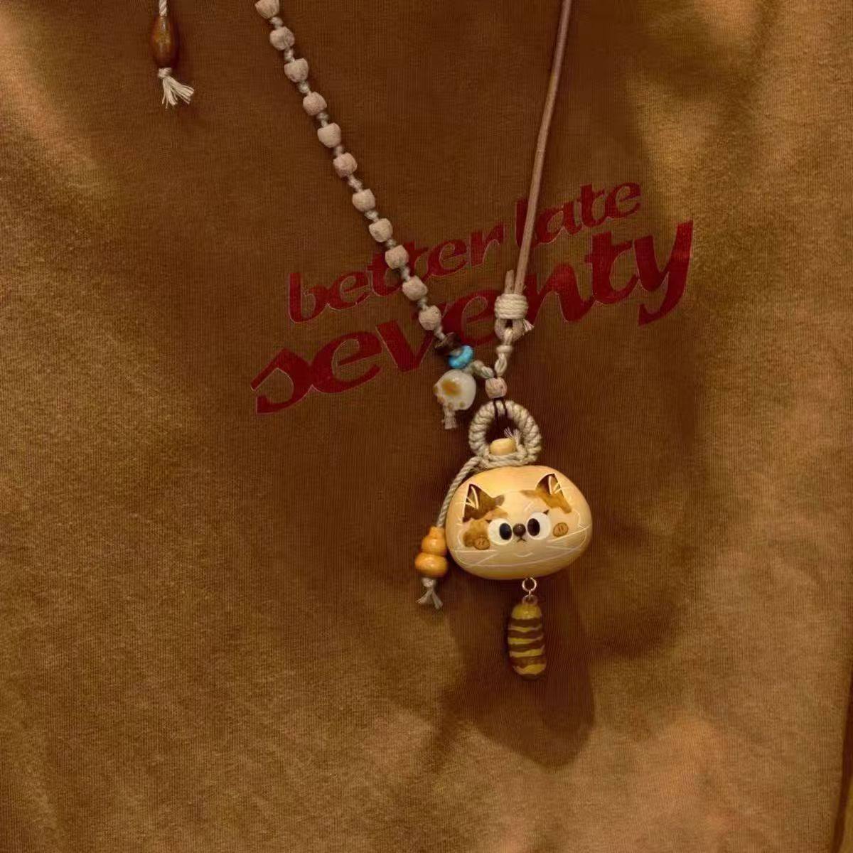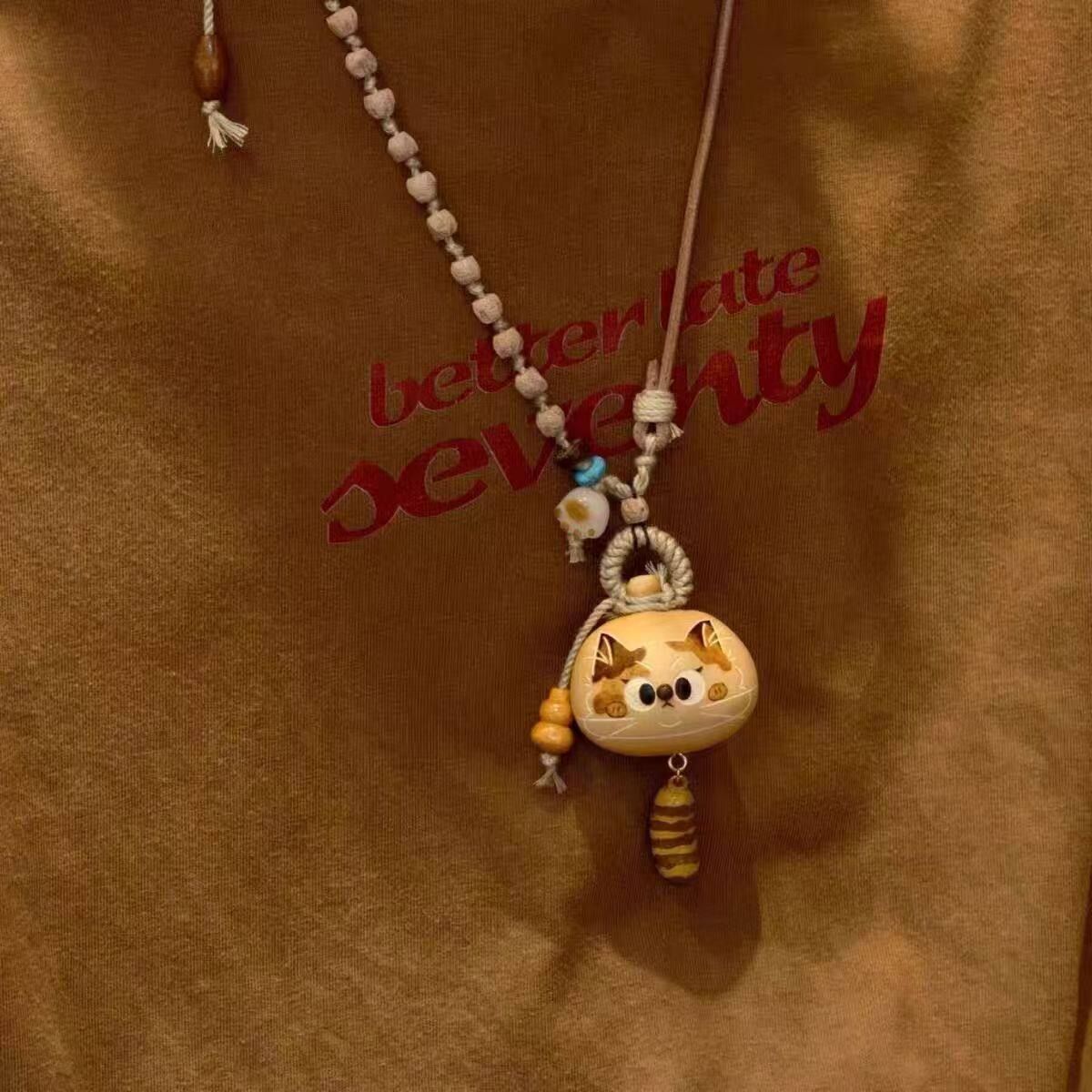卡通可爱小猫编织串珠项链2025新时尚小众设计感毛衣链高级感颈链