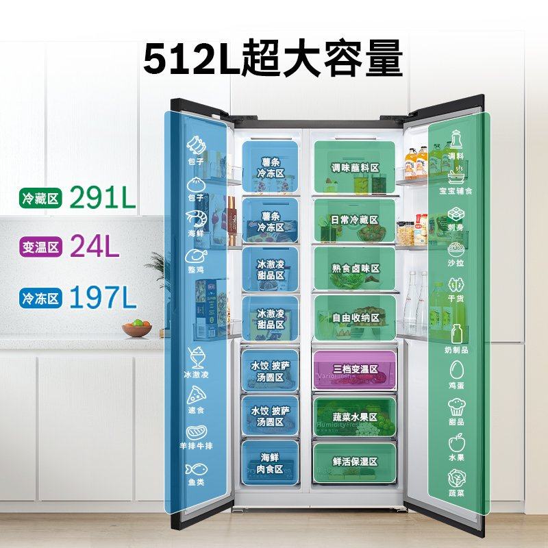 政府补贴海尔出品统帅538L对开双开门无霜一级变频大容量家用冰箱