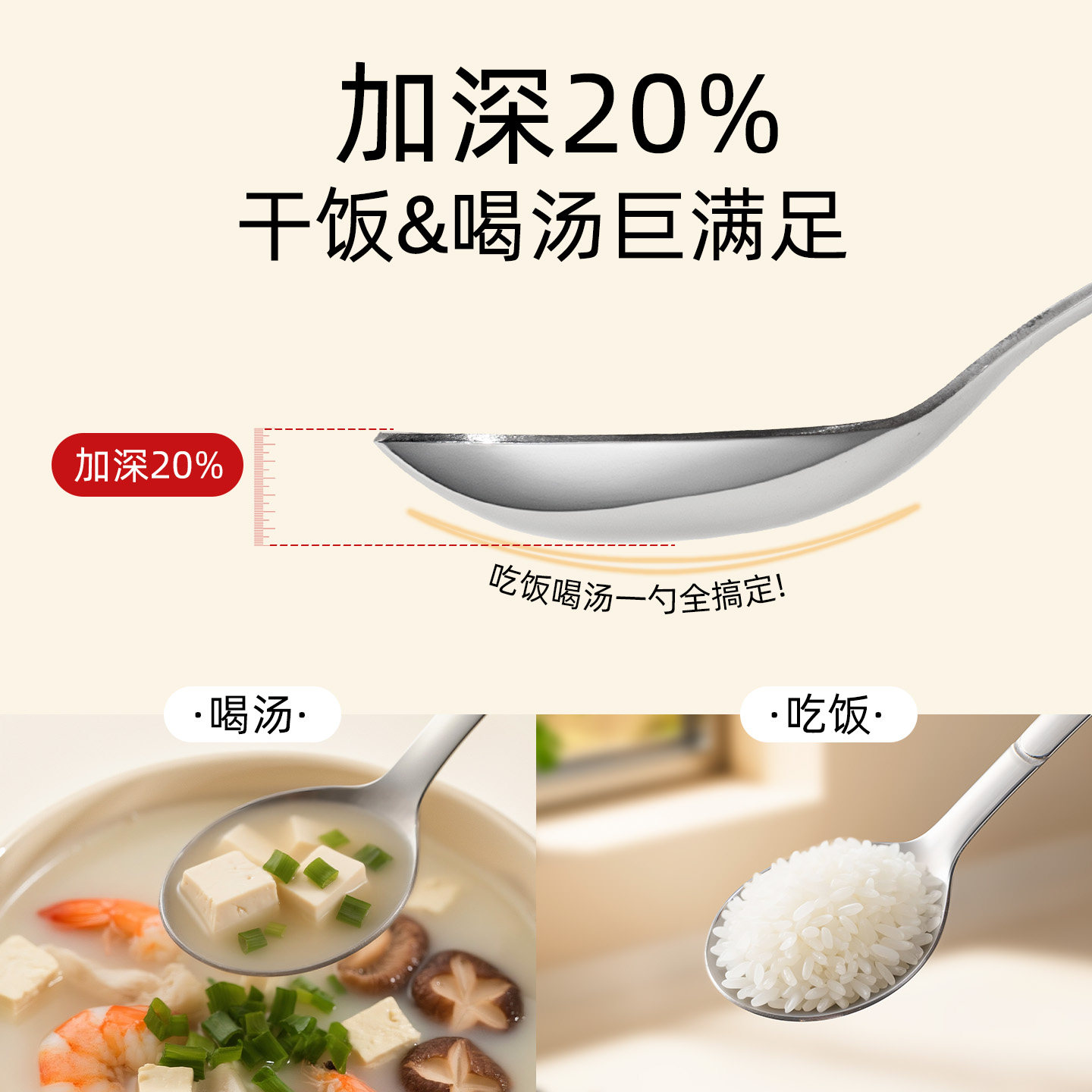 优质不锈钢 加深勺头 干饭更满足