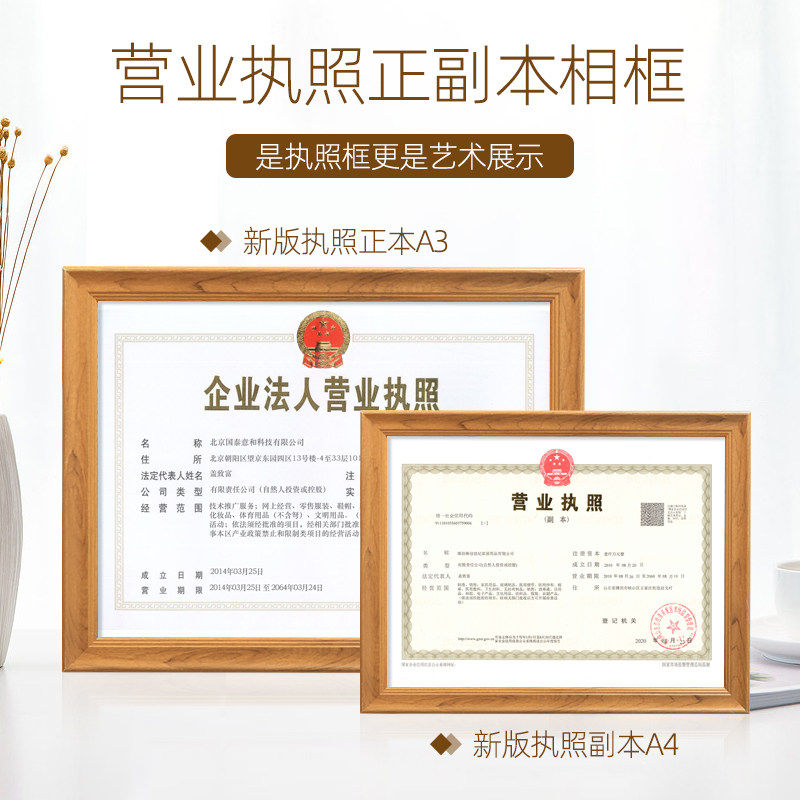 铝合金工商营业执照框卫生许可证正本a3证件展示相框执照框架挂墙