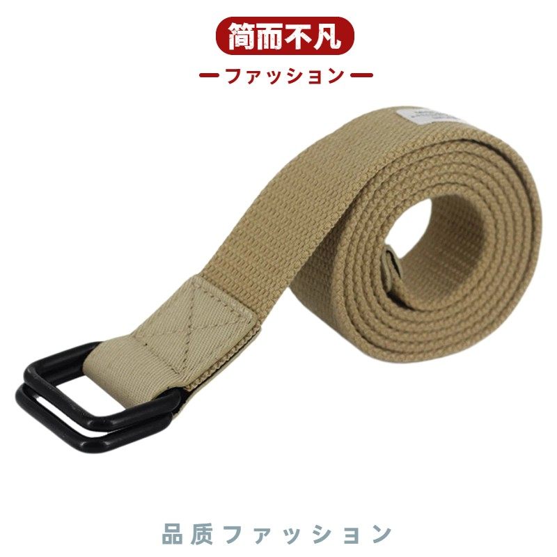 日本新款男女士帆布腰带双环扣年轻人学生工装风方扣皮带日系裤带