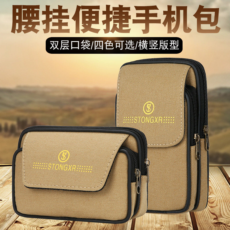 手机腰包多功能横竖帆布手机袋挂包男穿皮带手机套腰带腰包