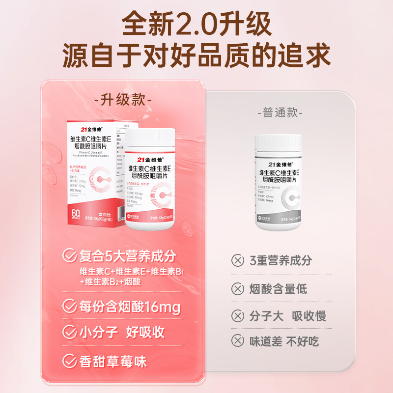 21金维他e维生素c烟酰胺男女维c美咀嚼片vc白正品官方旗舰店成人