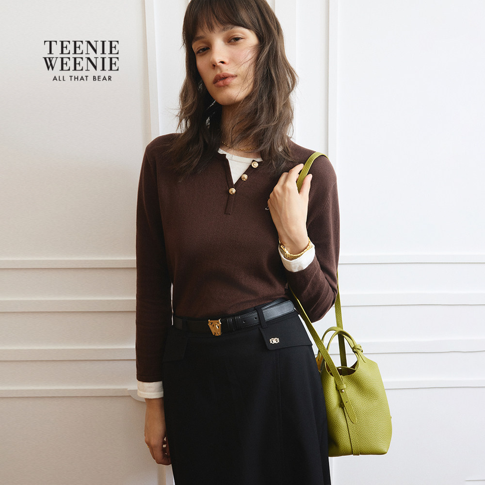 【含绵羊毛】TeenieWeenie小熊奥莱毛针织衫春秋款假两件撞色毛衣