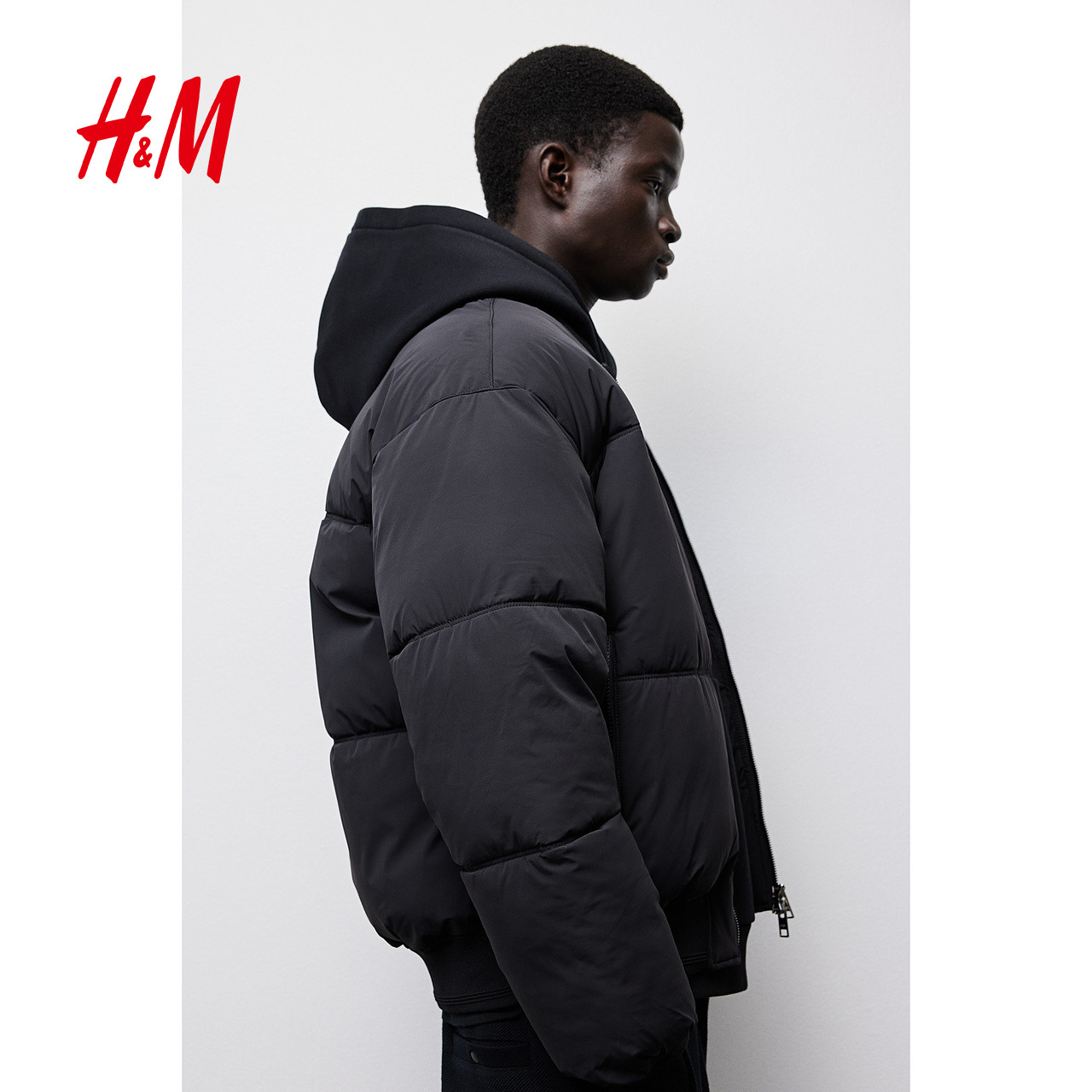 HM男装棉衣冬季冬装拉链休闲宽松保暖夹棉飞行夹克棉服1245646