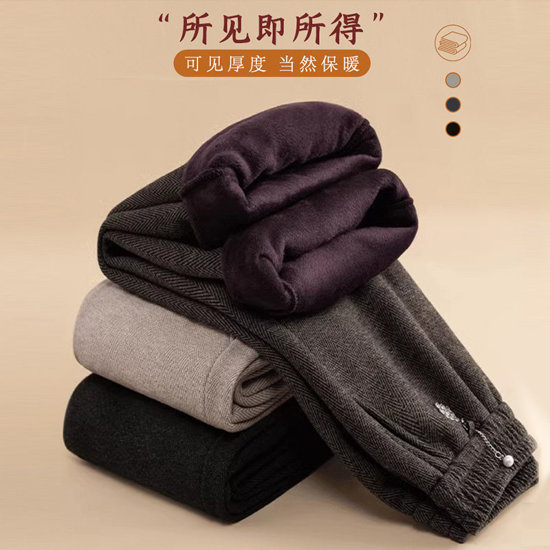 奶奶加绒加厚裤子冬季直筒裤中老年人妈妈老太太棉裤宽松春秋女裤