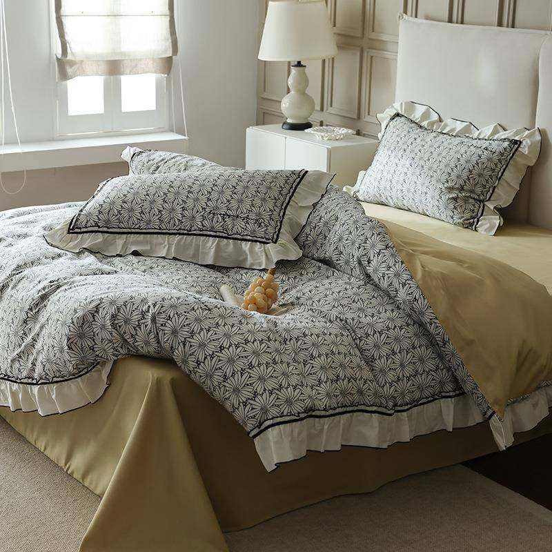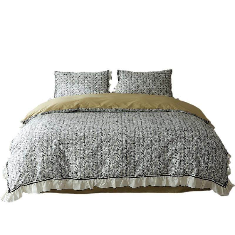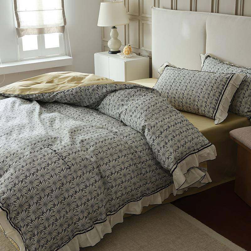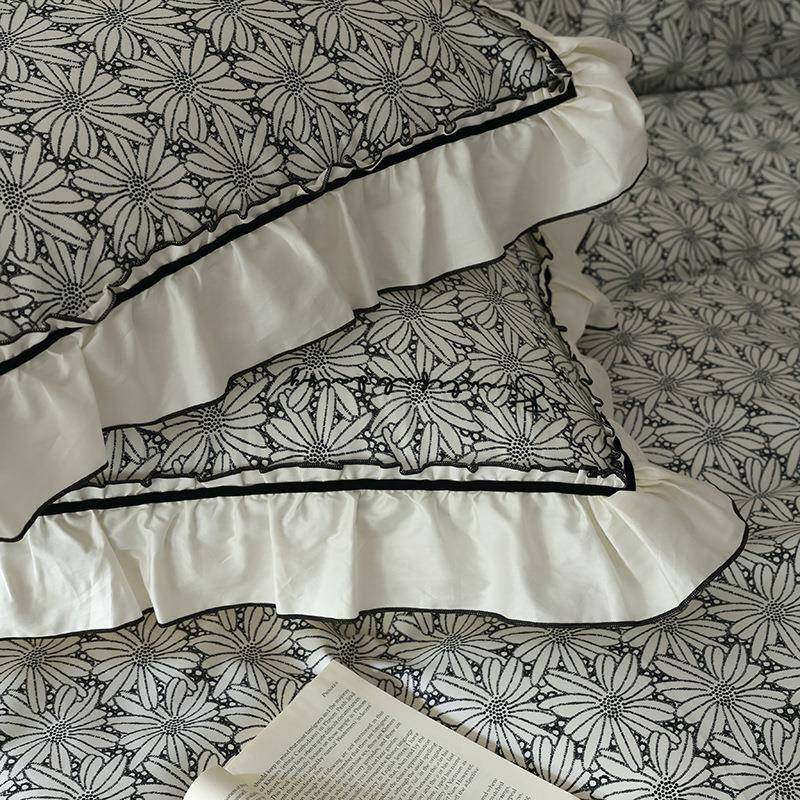 纯洁小雏菊数码印花60支贡缎长绒棉四件套 全棉荷叶边