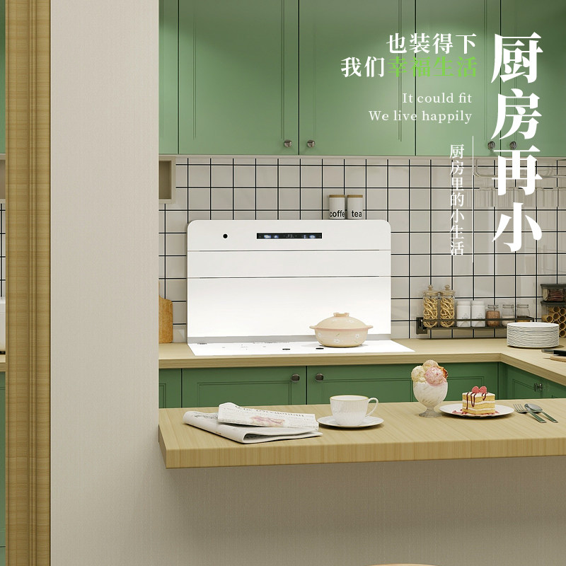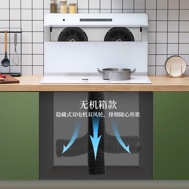 圣星公寓纯白色双电磁炉纯用电集成灶分体灶下排式抽油烟机燃气灶
