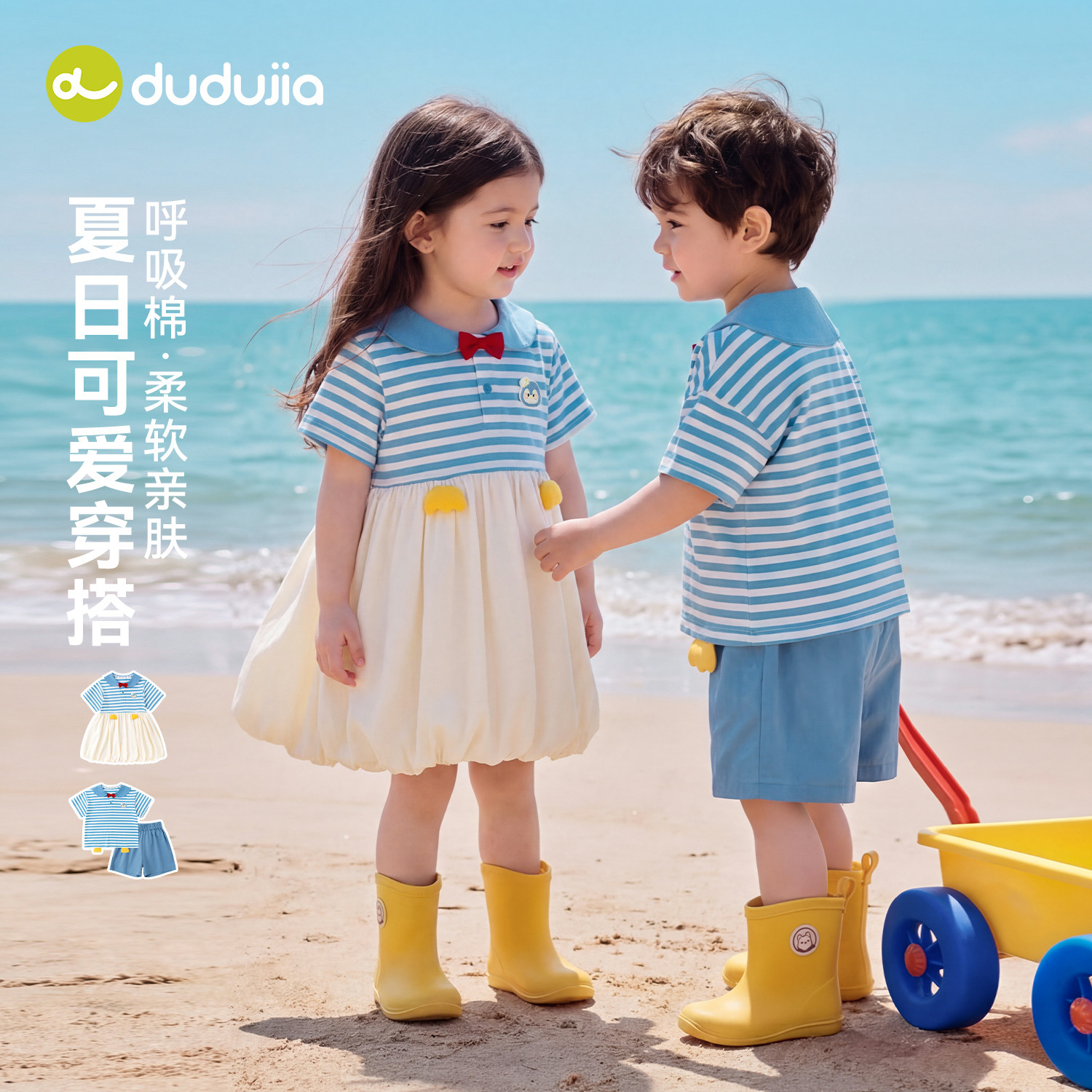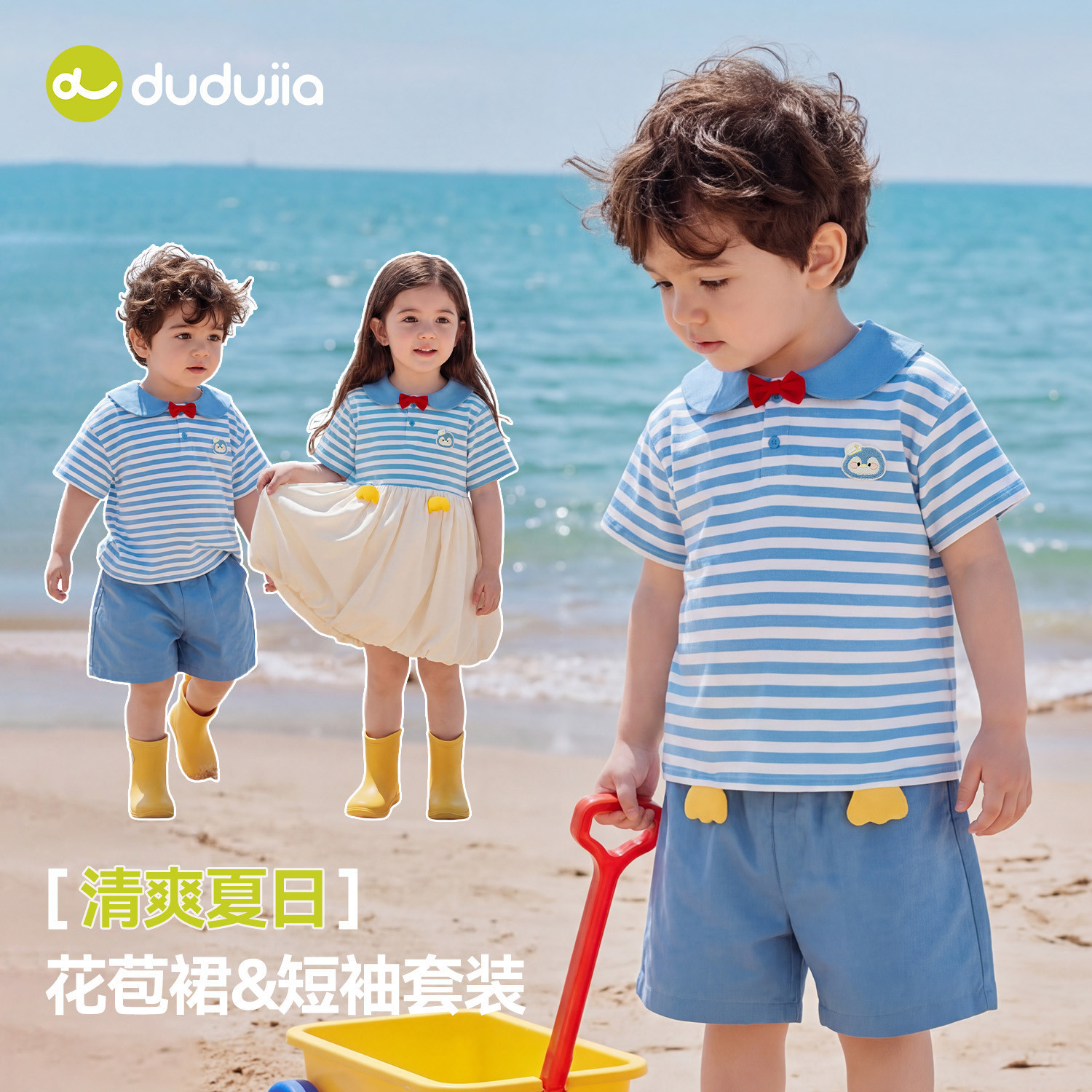 dudujia儿童套装夏季男童T恤短裤女童裙子短袖宝宝童装裤子夏装类