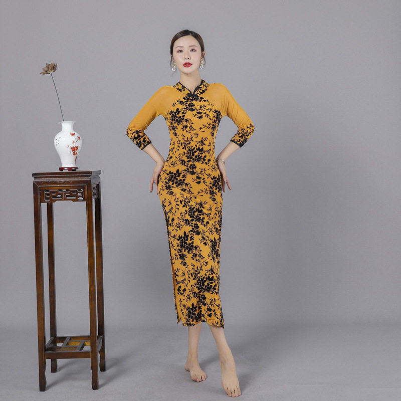 古典舞旗袍舞蹈服女练功服飘逸身韵纱衣中国风民族舞蹈开叉演出服