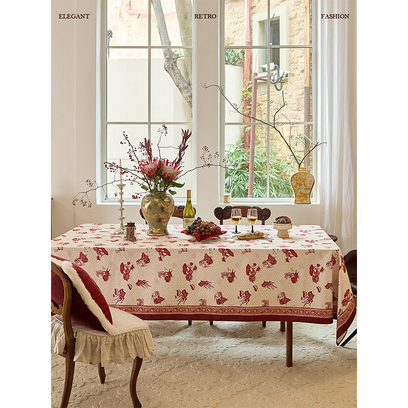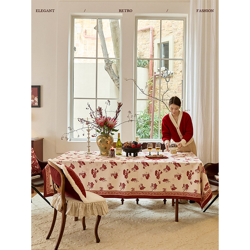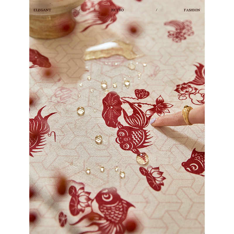 【孤品3折】蜡笔派锦荷庆瑞桌布新中式餐桌盖布氛围红色礼物防水A