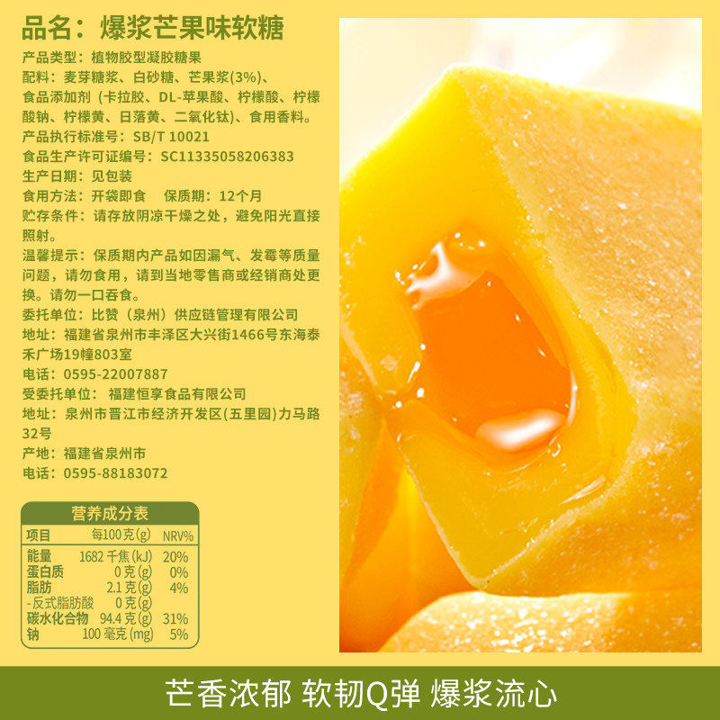 比比赞爆浆软糖芒果味喜糖糖果年货网红爆款零食休闲食品批发橘子