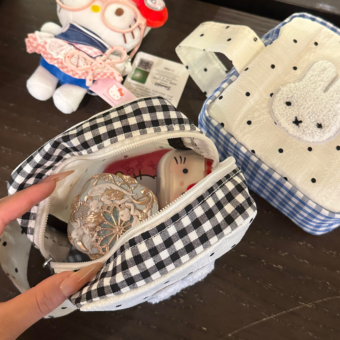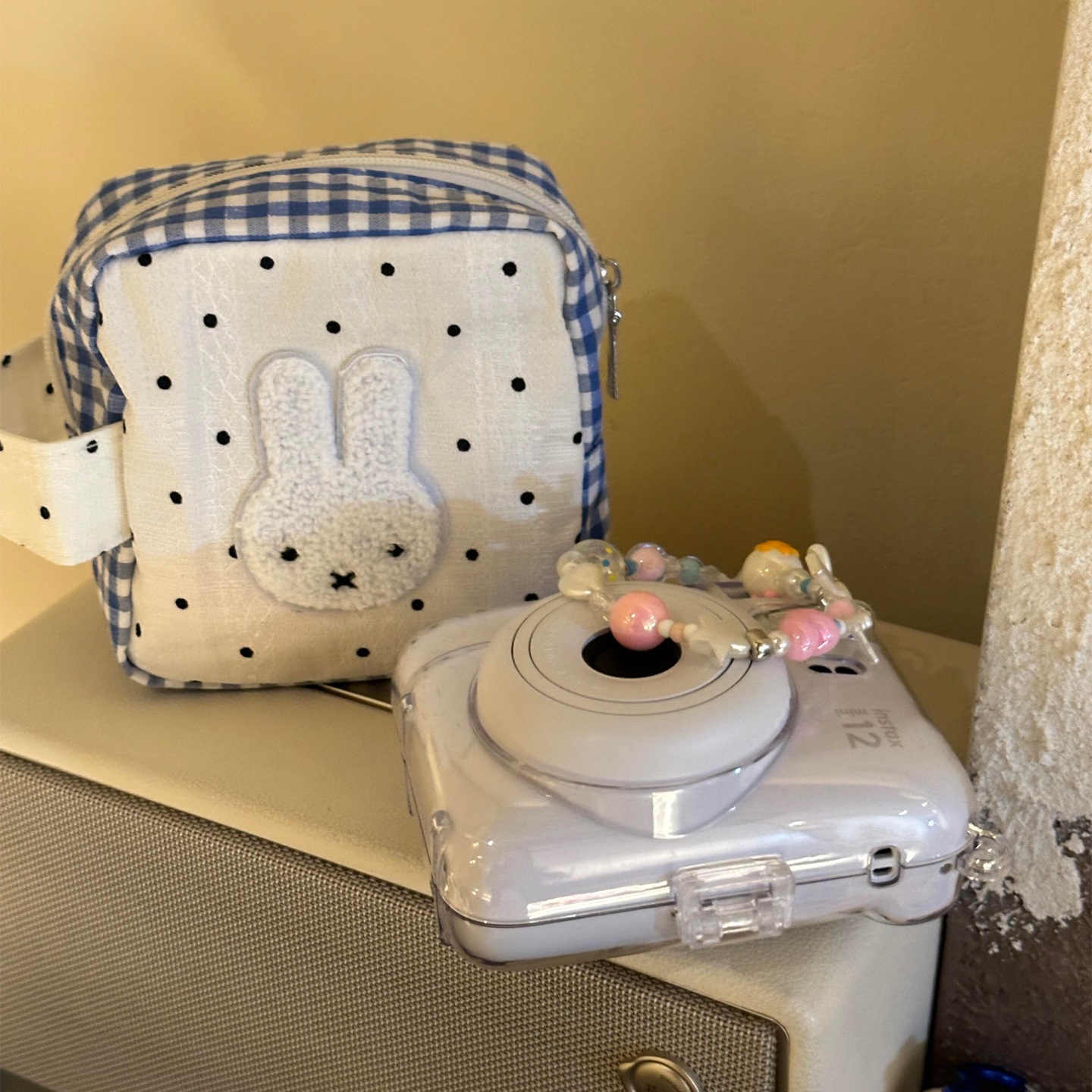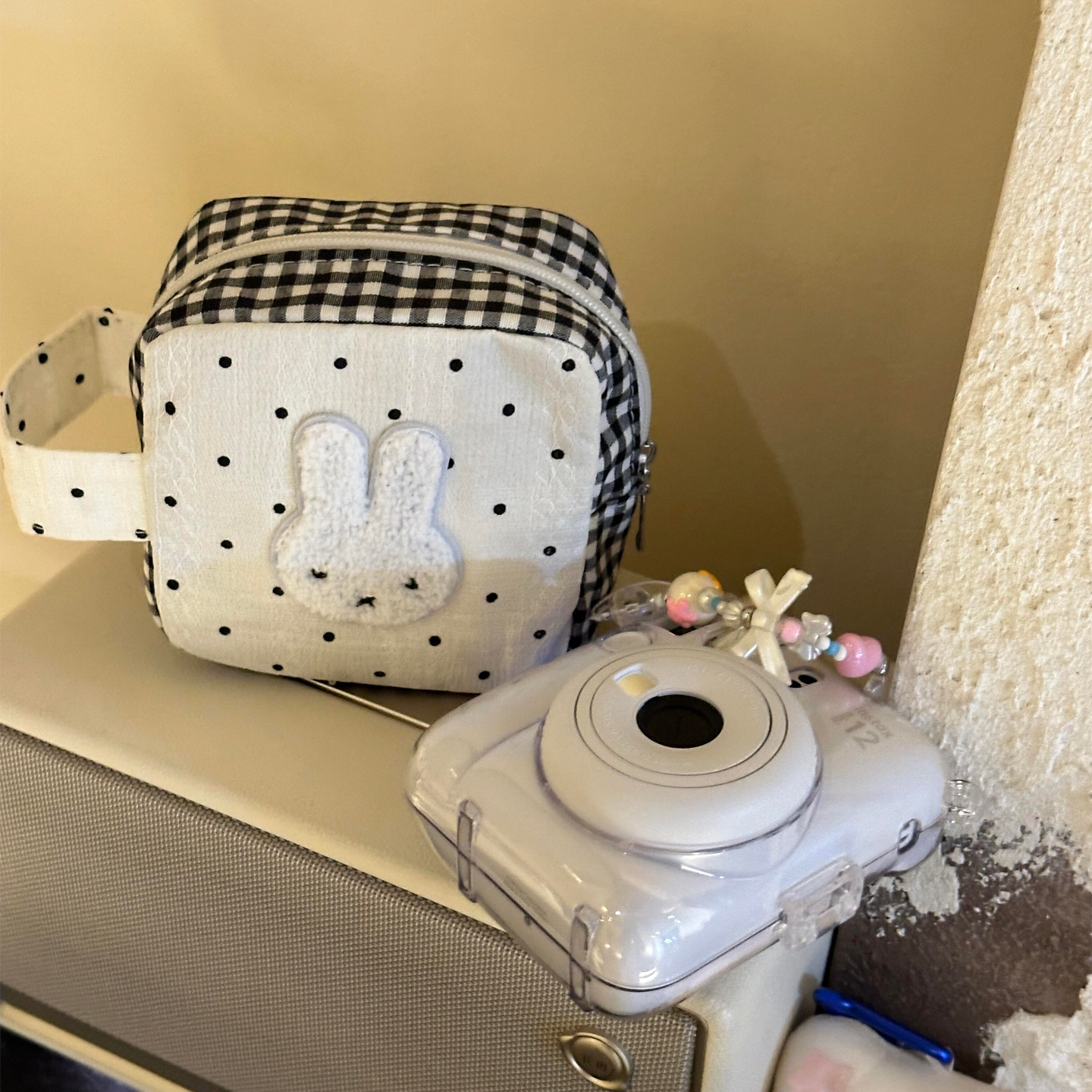波点兔子拍立得相机收纳包便携小方包化妆包照片胶片杂物手拎包