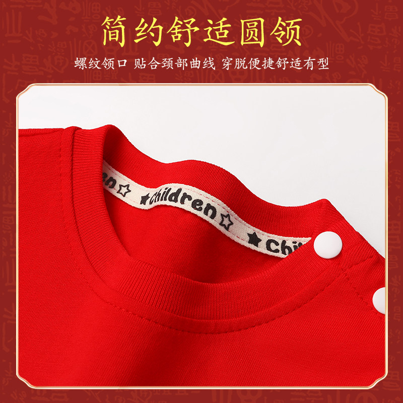拉夏贝尔男童短袖t恤纯棉新年本命年红色衣服儿童打底衫宝宝上衣