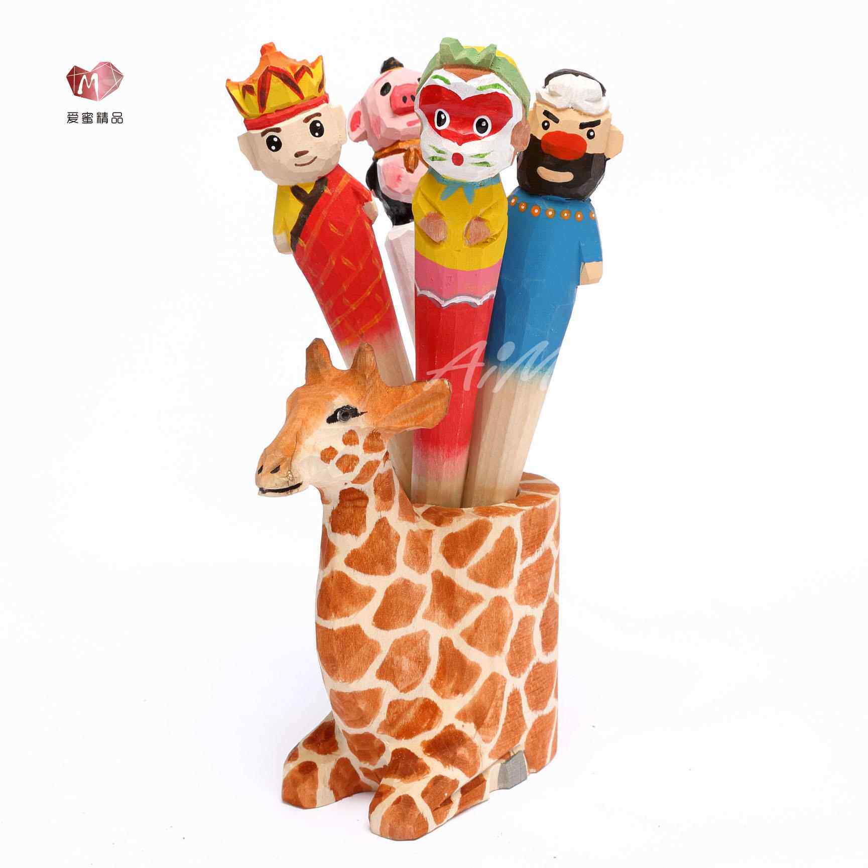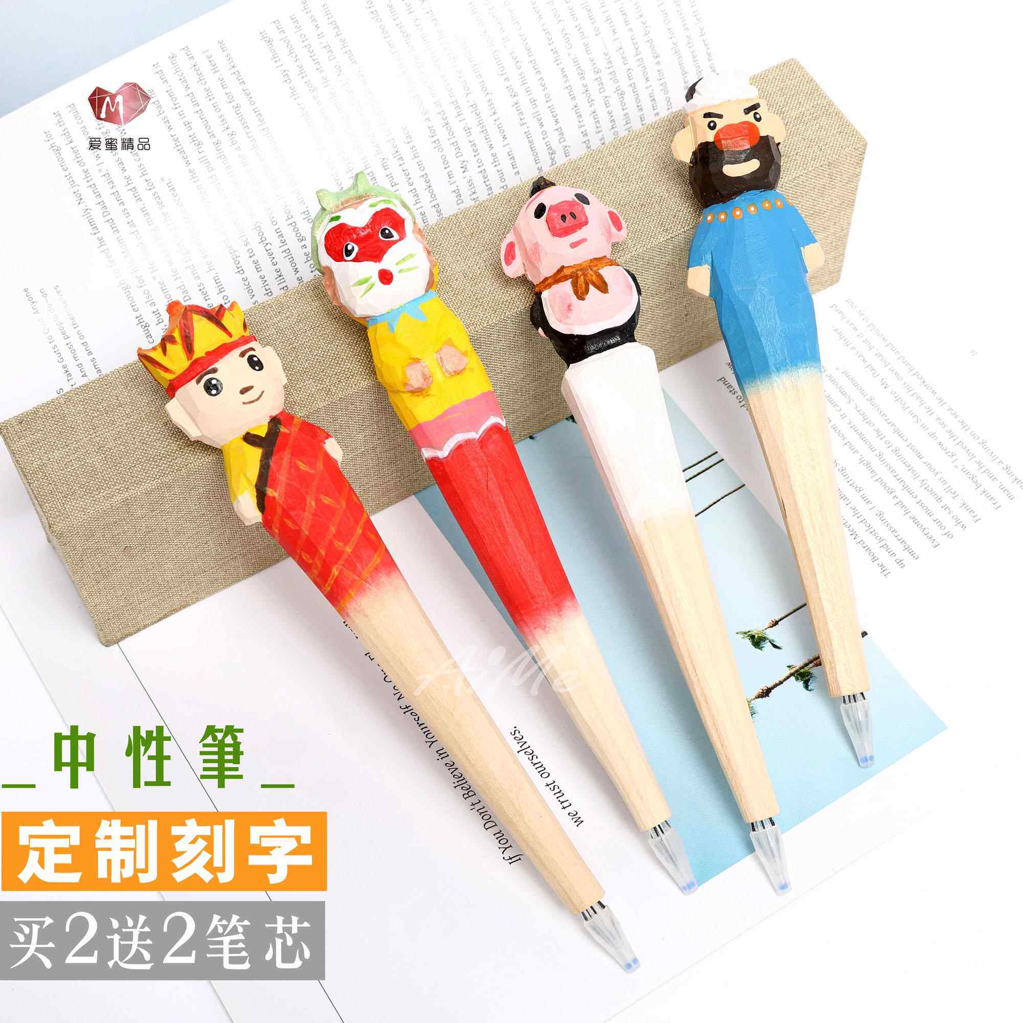 木雕中性笔黑悟空相关孙悟空猪八戒手工实木碳素签字笔儿童节礼物