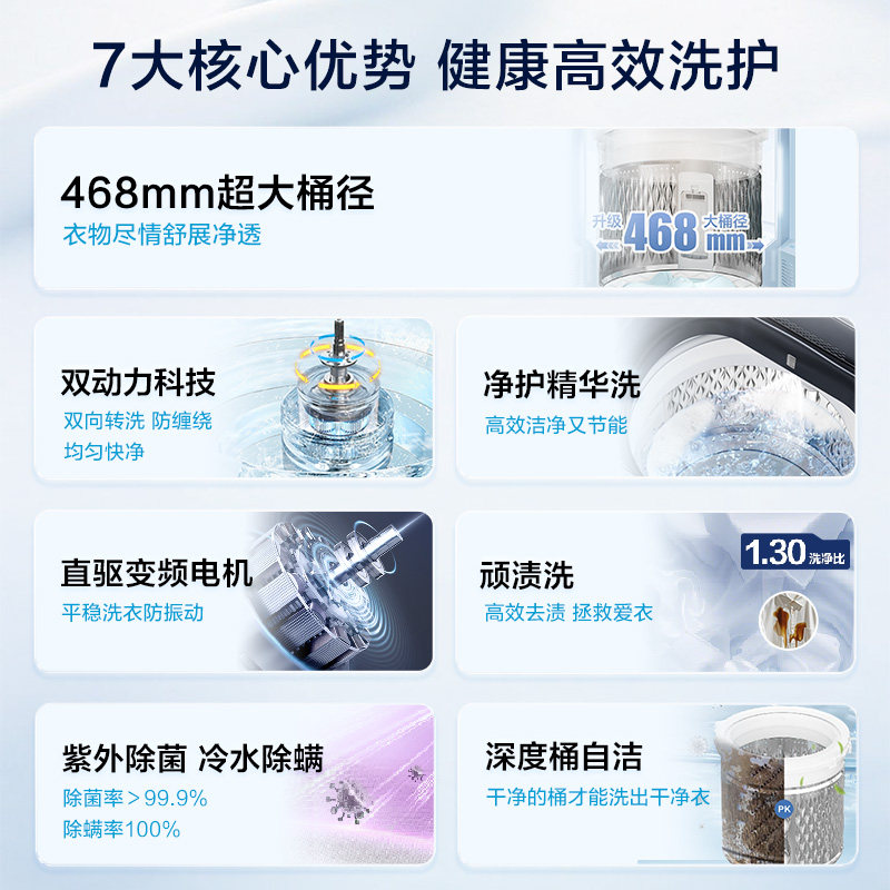 [以旧换新]海尔波轮双动力洗衣机家用全自动杀菌除螨直驱精华洗D8