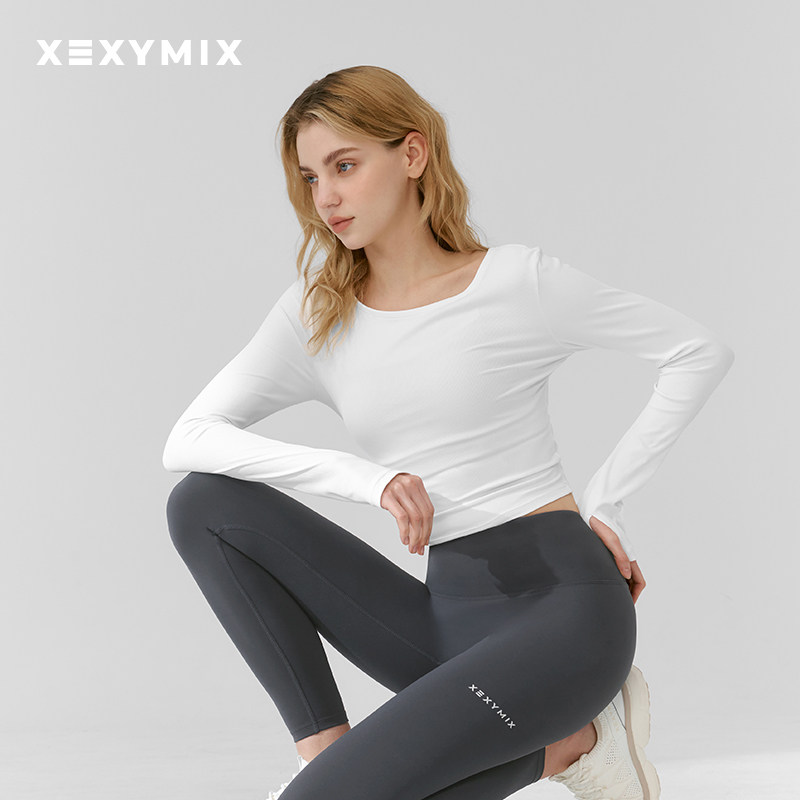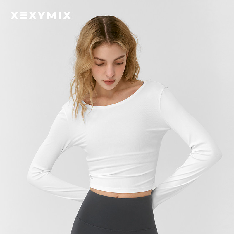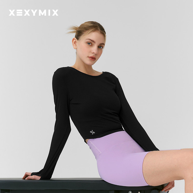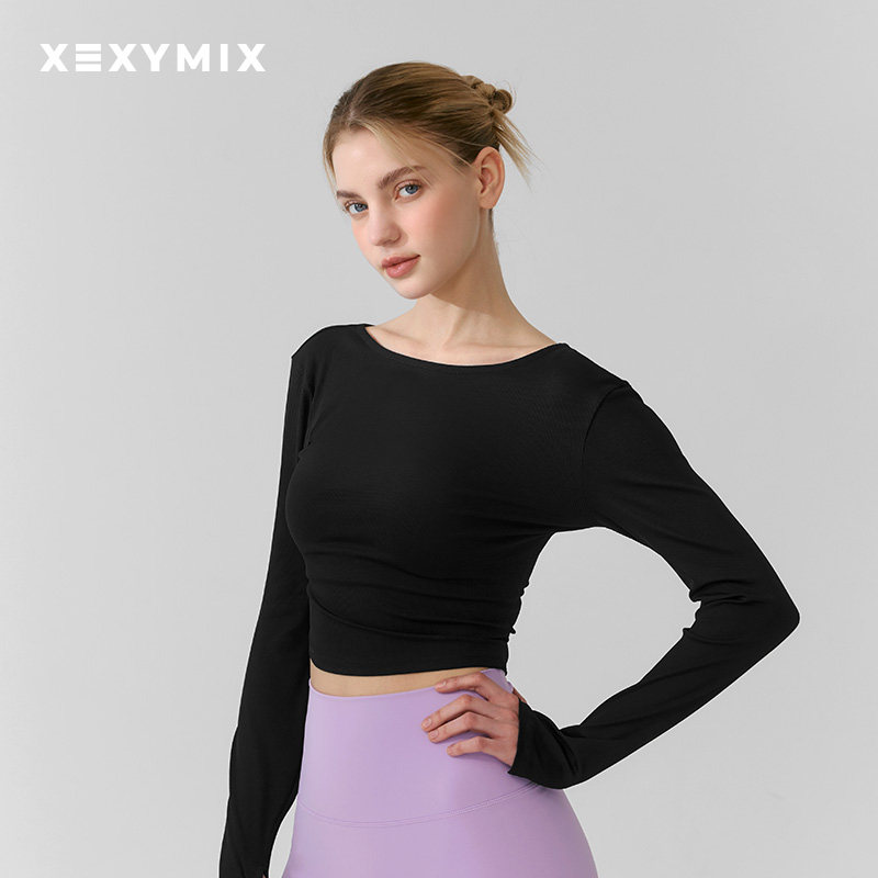 xexymix杰克茜女后腰镂空短款长袖T恤瑜伽舞蹈健身防晒XFK1TL1006