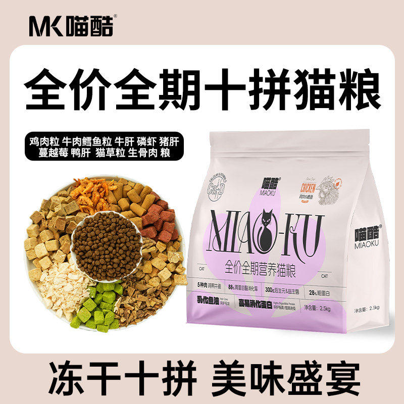 喵酷猫粮5斤冻干十拼幼猫成年猫通用布偶猫营养全价营养鱼肉主粮
