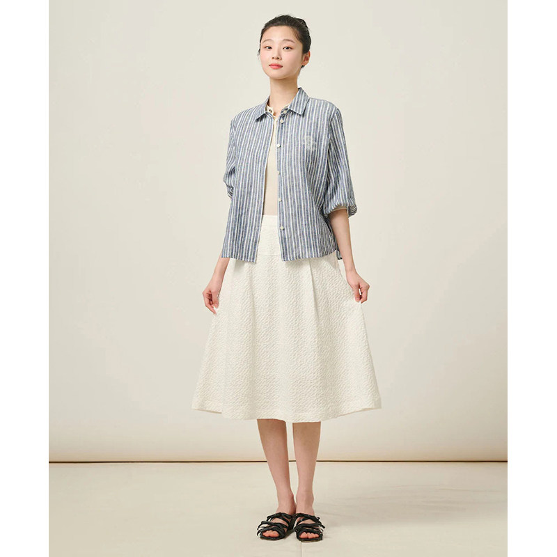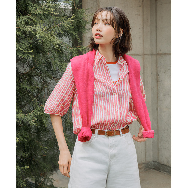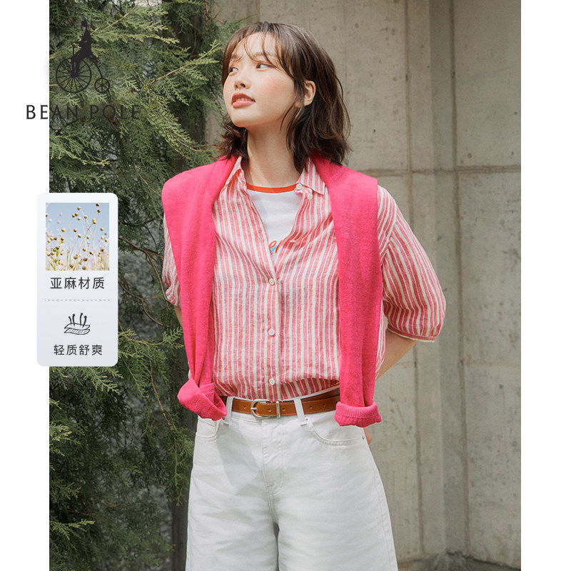 【新品】BEANPOLE滨波 春夏女士航海系列休闲条纹泡泡袖亚麻衬衫