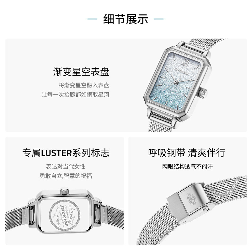 Dickies手表女款满天星小方表女士轻奢小众石英腕表新年生日礼物