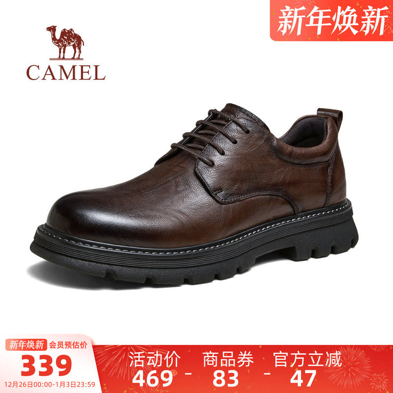 骆驼男鞋2025秋季新款真皮休闲德比鞋复古增高厚底商务正装皮鞋男