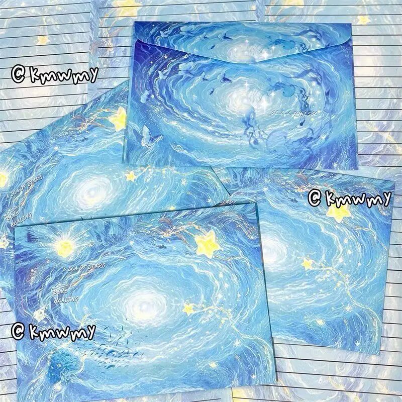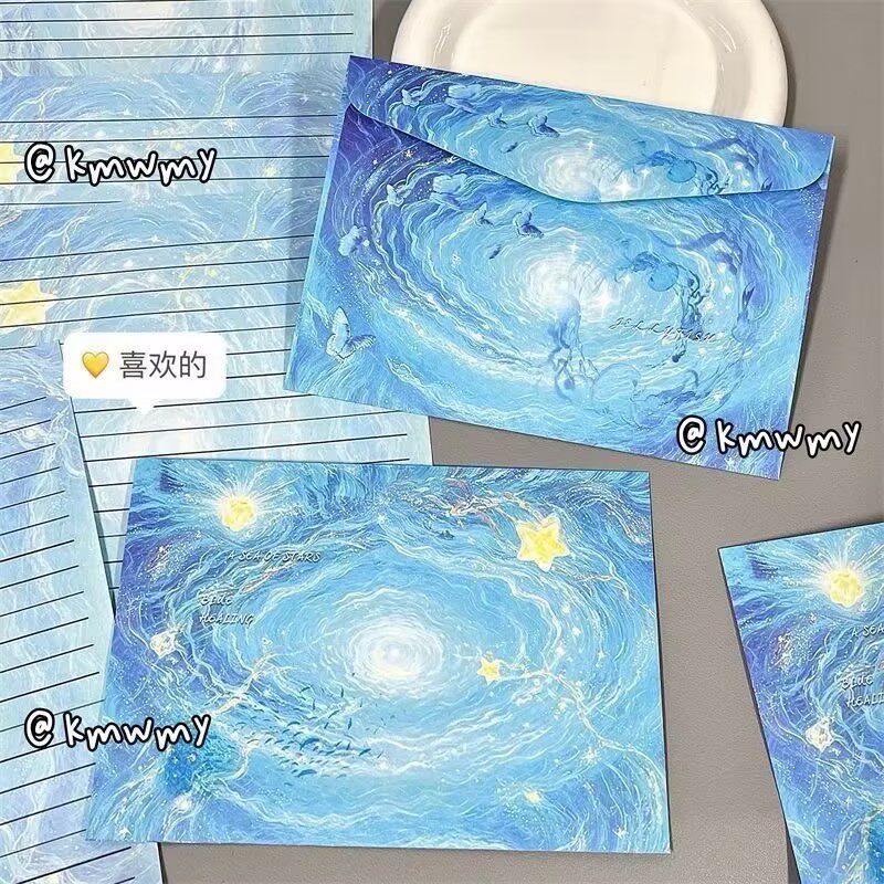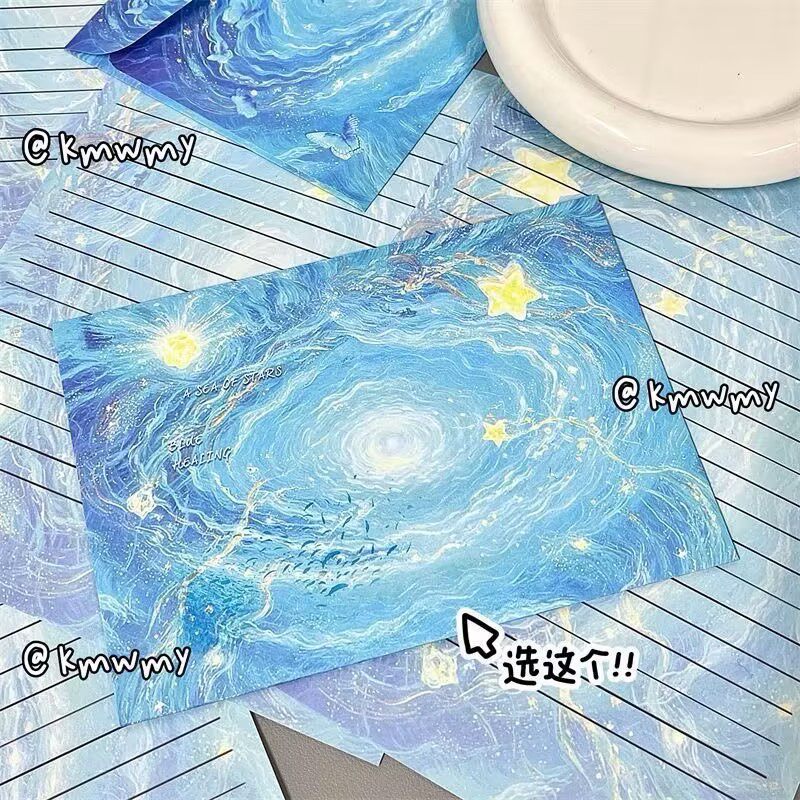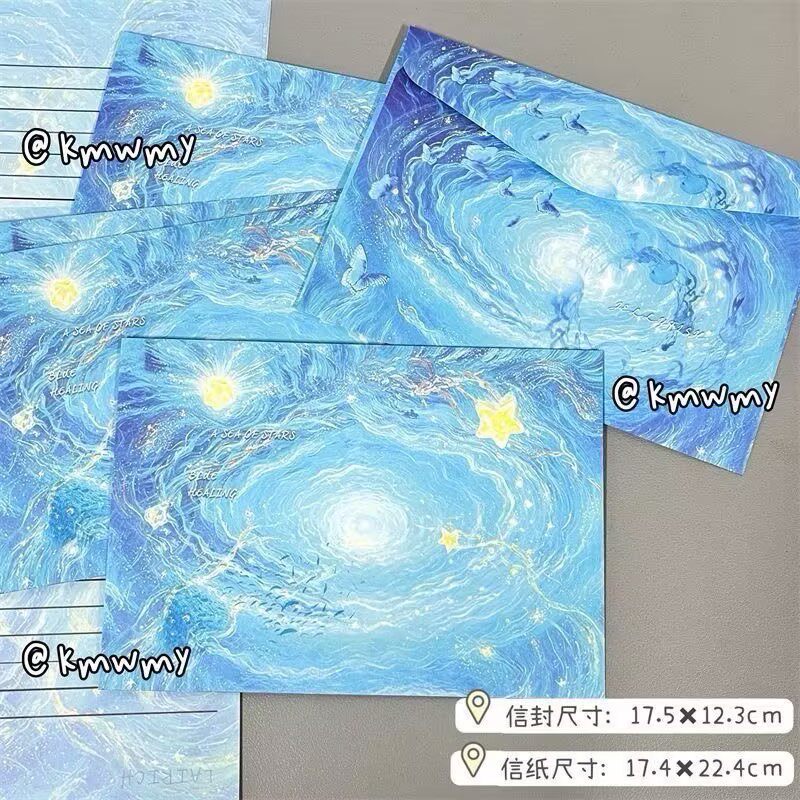 蓝色水母蝴蝶信封信纸套餐创意纪念礼物手写留言高颜值蝴蝶信笺函