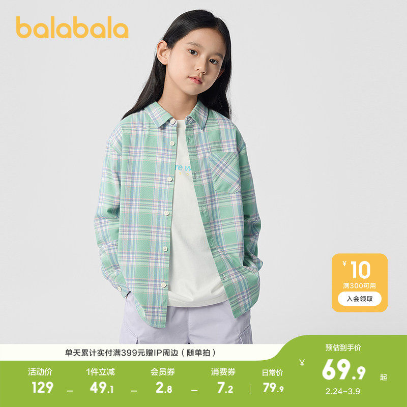 巴拉巴拉童装儿童长袖衬衫男童女童春装大童上衣休闲时尚百搭潮