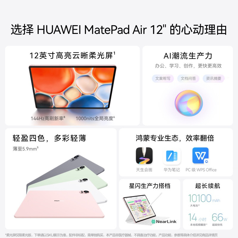 【政府补贴15%】华为 MatePad Air 12英寸24款144Hz高刷2.8k屏大学生绘画平板电脑81
