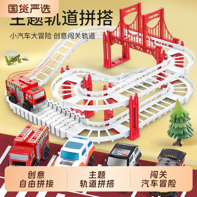 消防警察太空复古主题电动轨道车玩具6仿真火车儿童DIY礼物3男孩