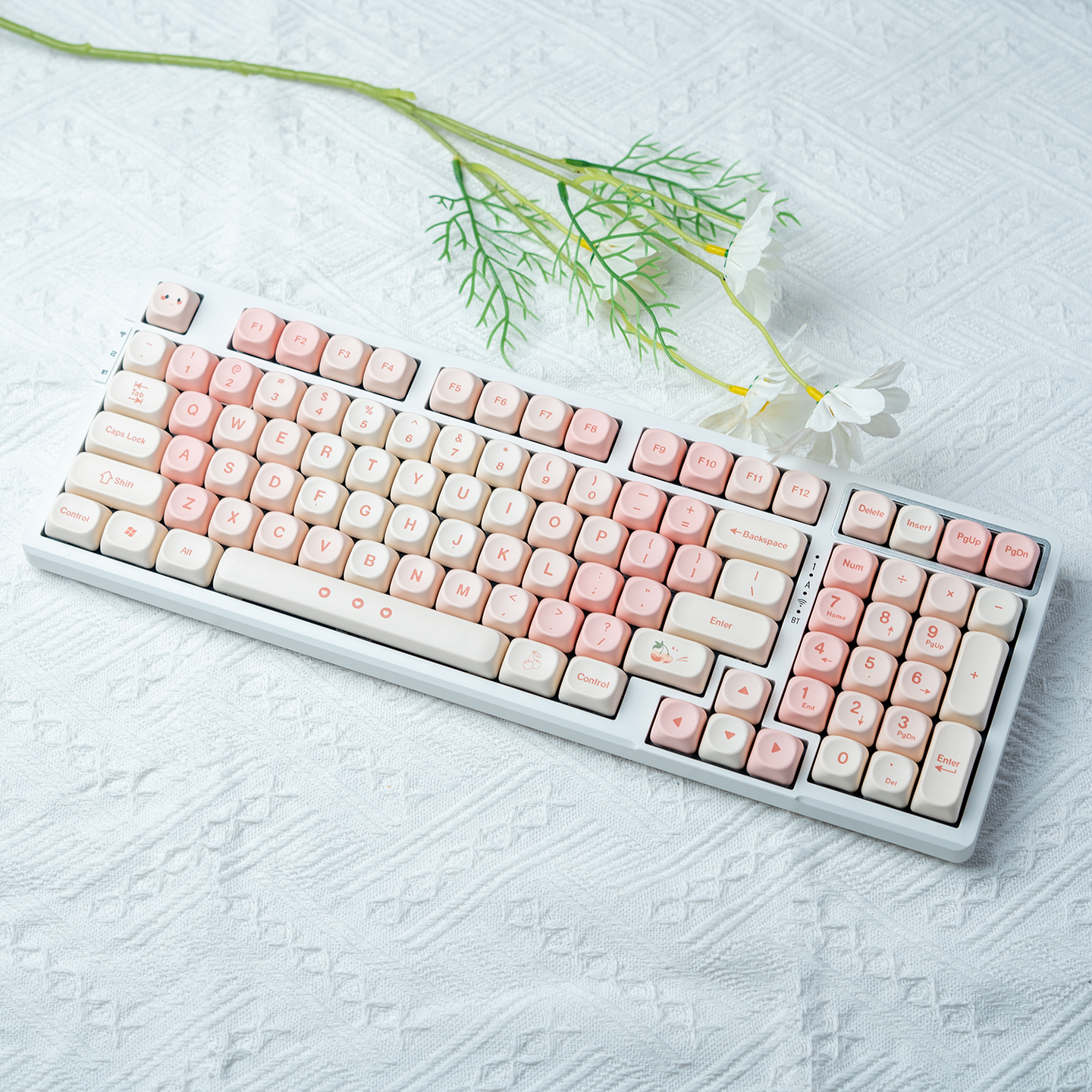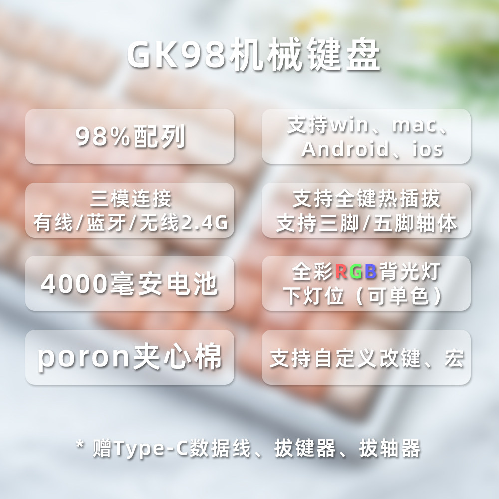 柏咖GK98机械键盘有线无线蓝牙女生办公打字专用高颜值麻将音静音