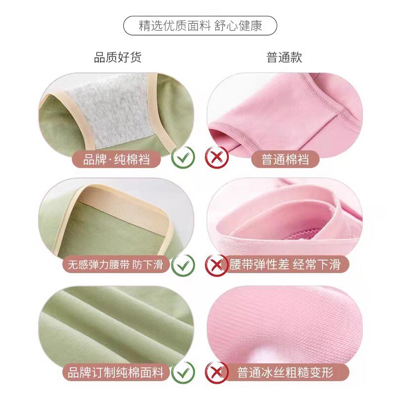 超薄面膜内裤女冰丝胖mm大码抗菌加长裆少女生短裤无痕女士三角裤